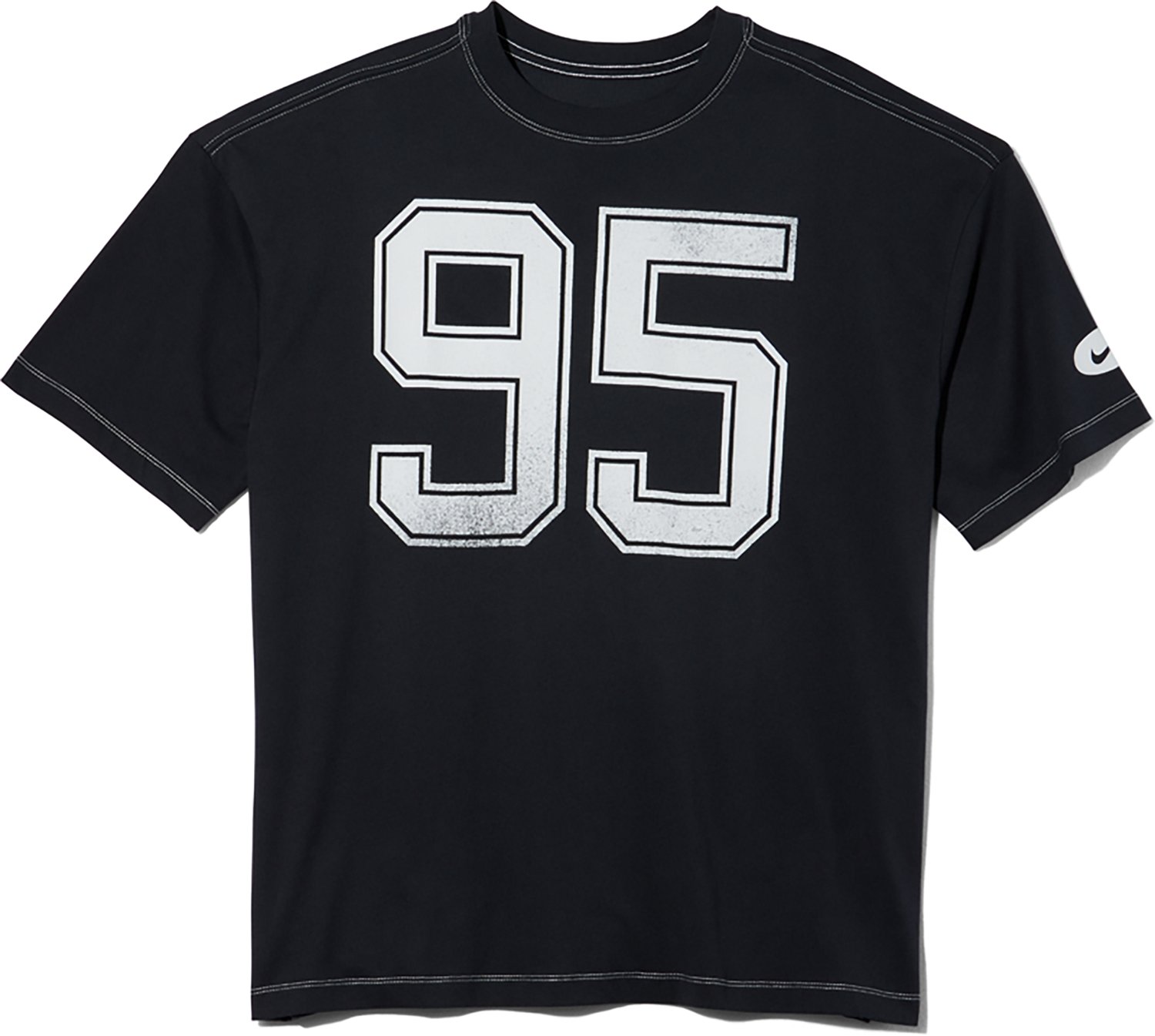 You can make a stylish statement when you put on the Nike Women's Sportswear Street Oversize T-shirt. This T-shirt is made of 100% midweight cotton to offer a slightly textured feel and sports distressed numbers that give it a classic look. The oversize design offers dropped shoulders for a laidback look.
