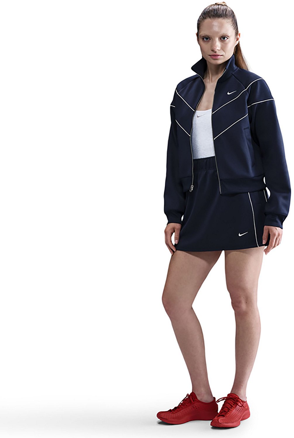 Sport a vintage look with the Nike Women's Sportswear Windrunner Knit Full-Zip Jacket. The polyester and spandex material provides a comfortable feel, while the embroidered Swoosh logo adds a stylish touch.