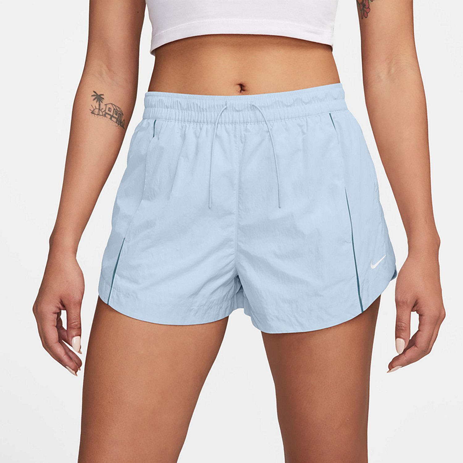Put on the Nike Women's Sportswear Windrunner Woven Mid Rise Shorts 2 in and go out for a run or run errands. These nylon shorts are designed with a sweat-wicking lining that helps you stay cool and comfortable, and the UV protective properties help create a barrier against the sun's rays.