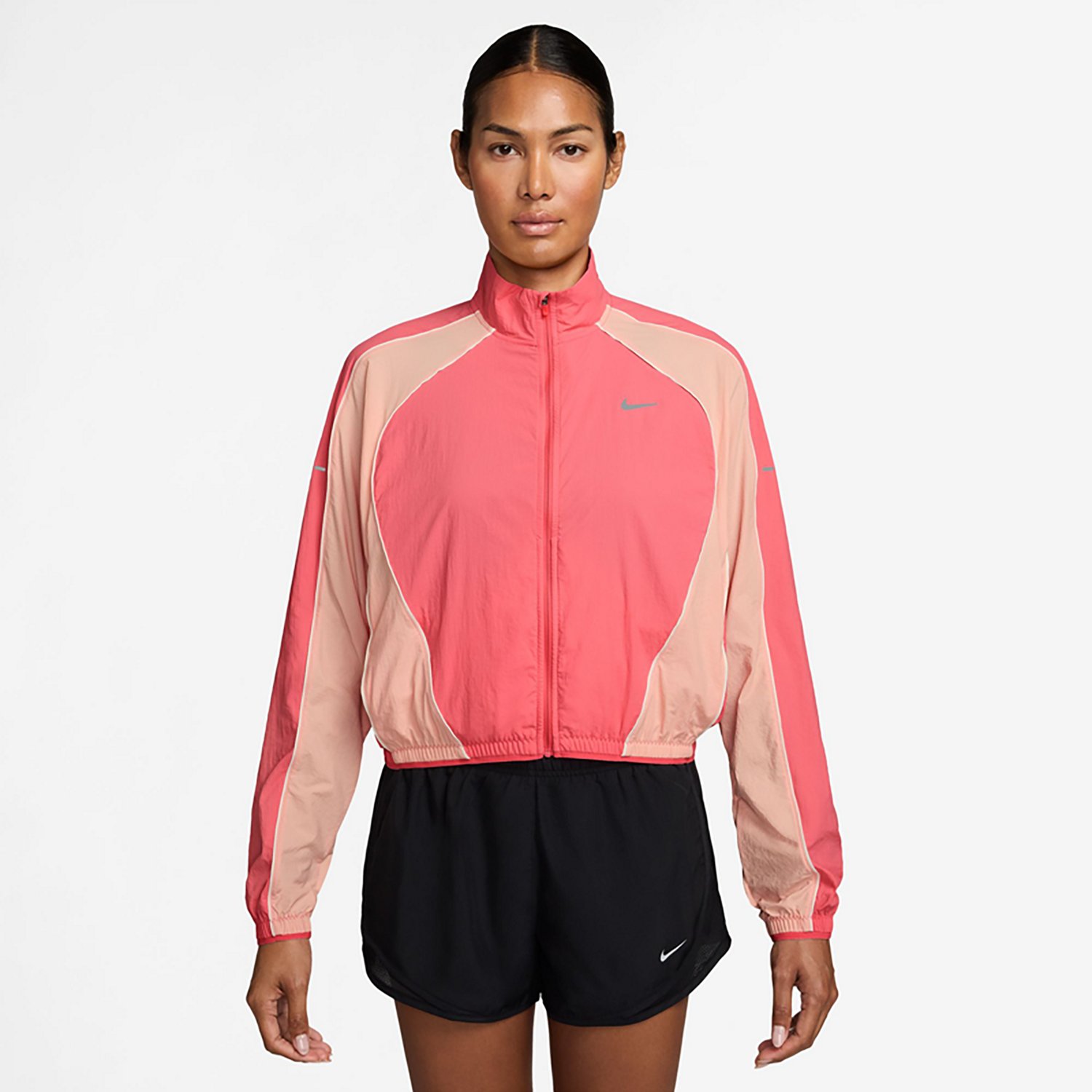 Keep dry and safe from the sun's harmful rays during runs wearing this Nike Women's Swift UV Repel Jacket, featuring a moisture-repellent treatment and UVA and UVB protection. The lightweight woven 100% nylon construction wears comfortably whatever the weather, and reflective details on the front, back and sleeves let others know you're getting your steps in.