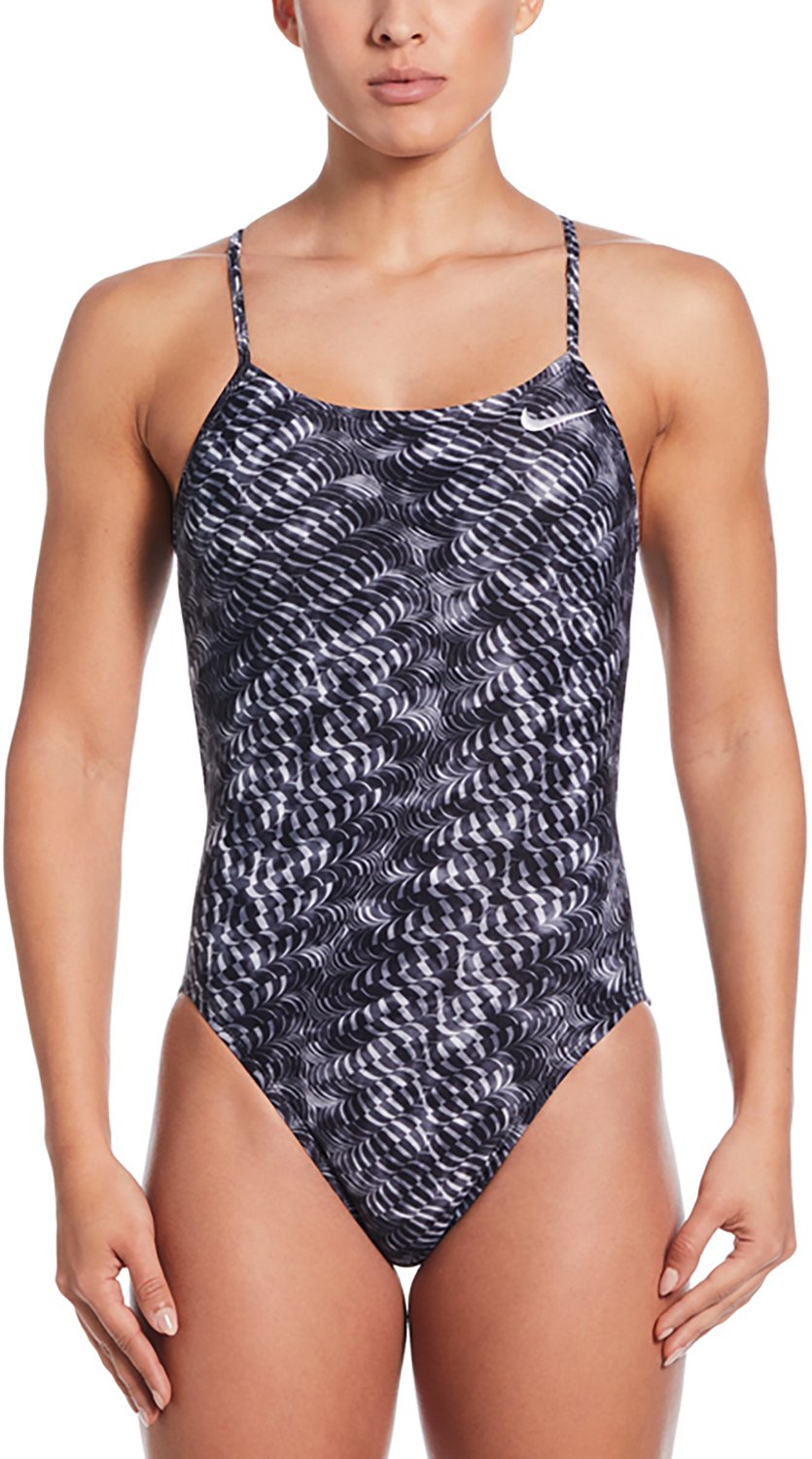 Push the boundaries of your lane with the Nike Women's Swim Hydrastrong Pool Lanes Cutout Swimsuit. This one-piece swimsuit is made of chlorine-resistant polyester that dries quickly and resists snagging for lasting comfort. The polyester liner keeps you covered, while the scoop neck and printed design add a touch of flair. The open back makes it a great addition to any outdoor training regime.