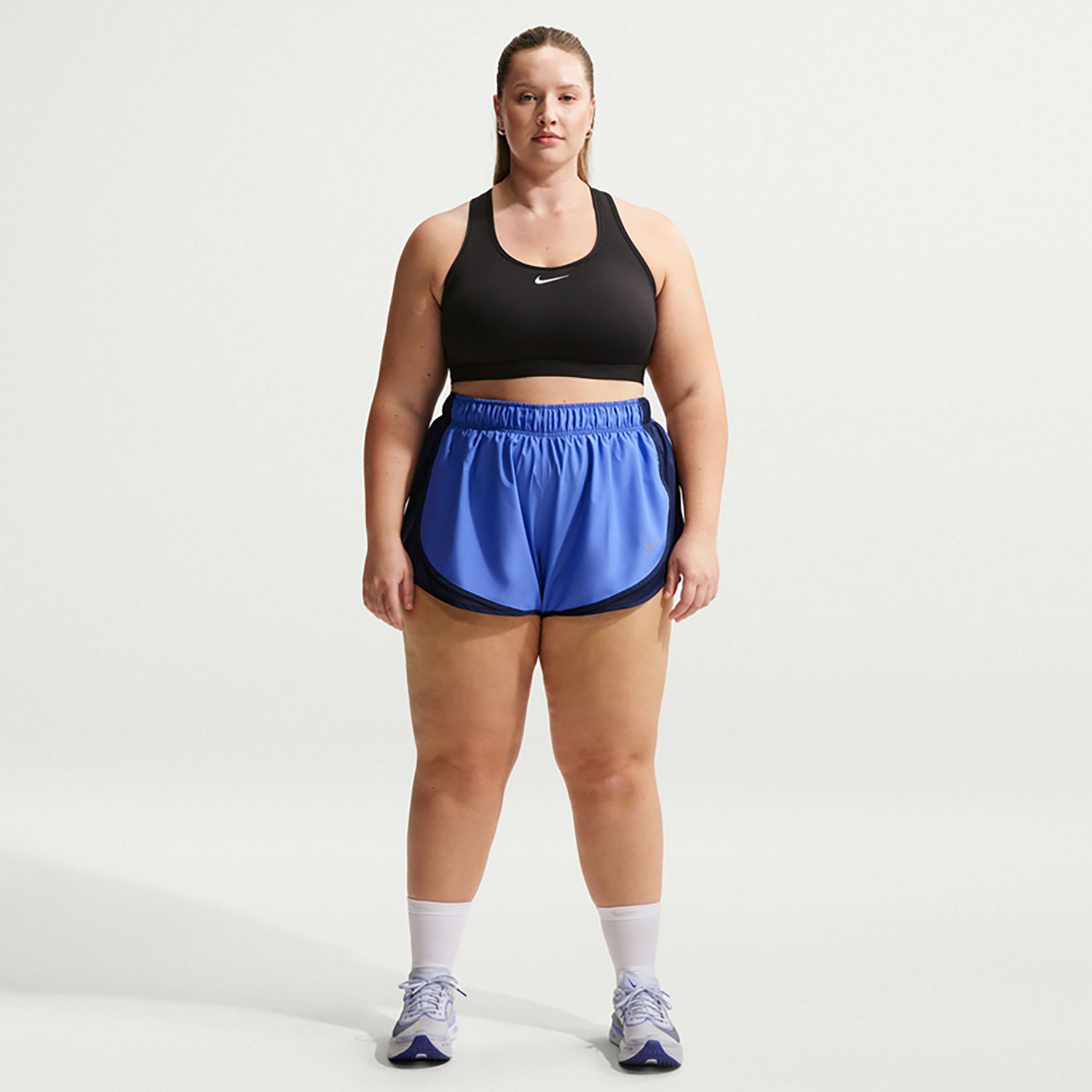 Get into a rhythm with the Nike Women's Tempo Dri-FIT Mid Rise Plus Size Running Shorts 3 in. The polyester material provides a comfortable feel, while the Dri-FIT technology wicks away sweat to keep you cool and dry. The elastic waistband and internal drawstring combo offers a custom fit, and the mesh panels promote breathability.