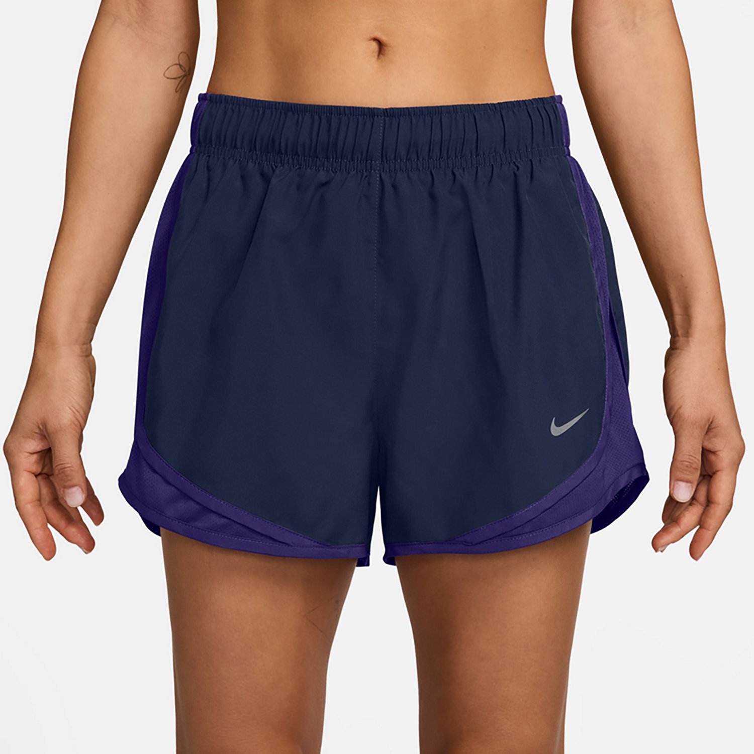 Stay cool when working out with the Nike Women's Tempo Dri-FIT Mid-Rise Running Shorts 3 in. They are made of 100% polyester for lasting wear, and the drop-in pocket on the brief liner fits a card or keys. The elastic waistband has an internal drawstring for an adjustable fit, and the soft seams on the brief liner help reduce chafing.