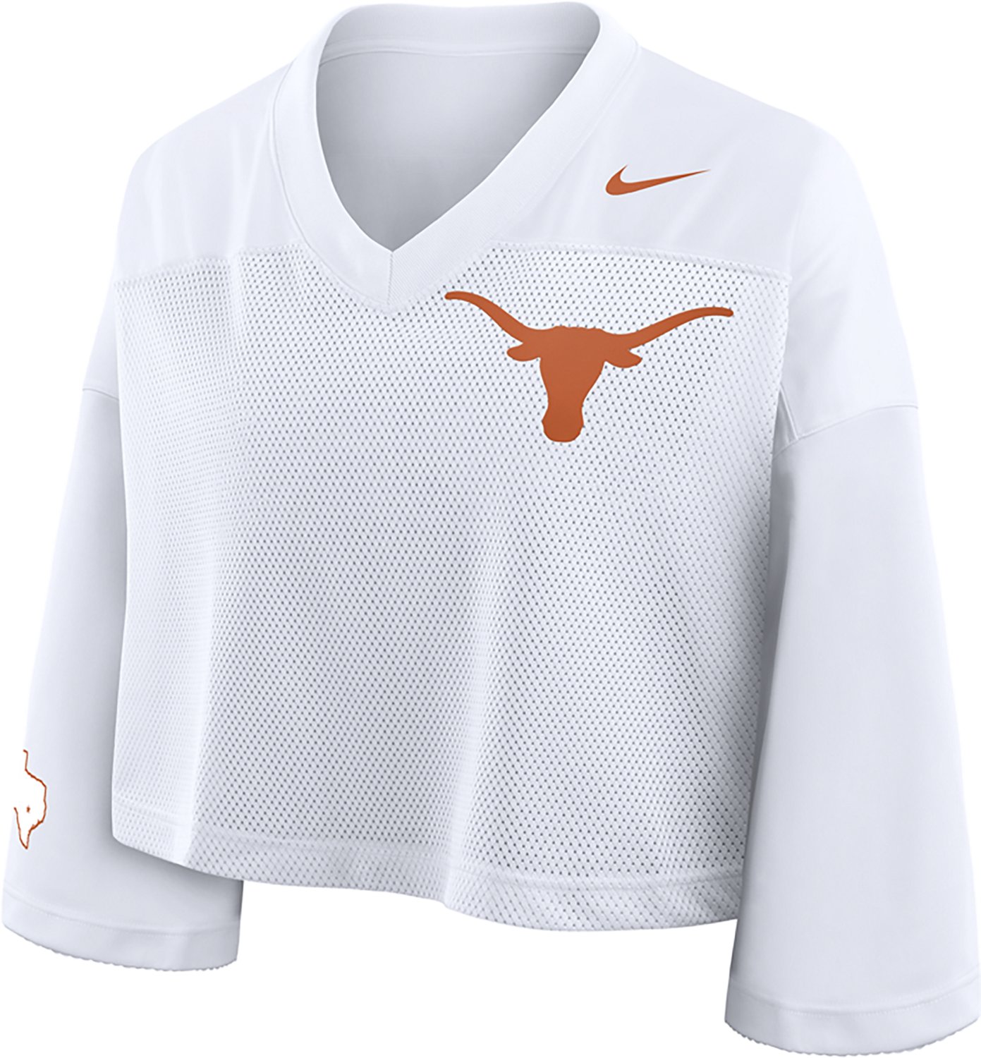 Make sure your fan spirit is on display by wearing the Nike Women's Texas Crop Football Jersey. This jersey is cropped for a stylish look and feel, and the team logo graphic helps true fans express their allegiance.