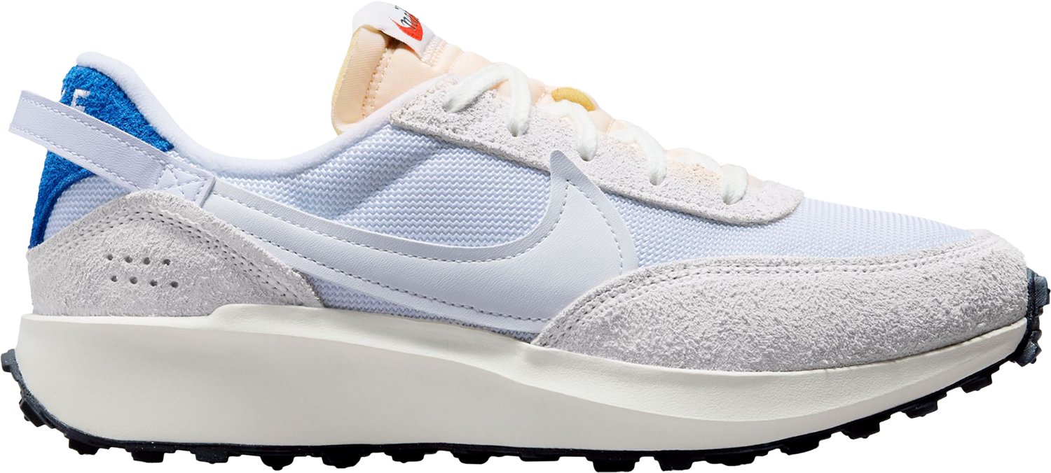 Step back in time with the Nike Women's Waffle Debut Shoes. This retro-inspired silhouette blends classic style with modern comfort. The breathable textile upper, accented with soft suede overlays, delivers a premium look and feel. The iconic Waffle outsole, a nod to Nike's heritage, provides excellent traction and durability. The cushioned wedge midsole offers responsive cushioning with every stride. Complete with a convenient pull tab and secure lace closure, these shoes are perfect for both workouts and casual wear.