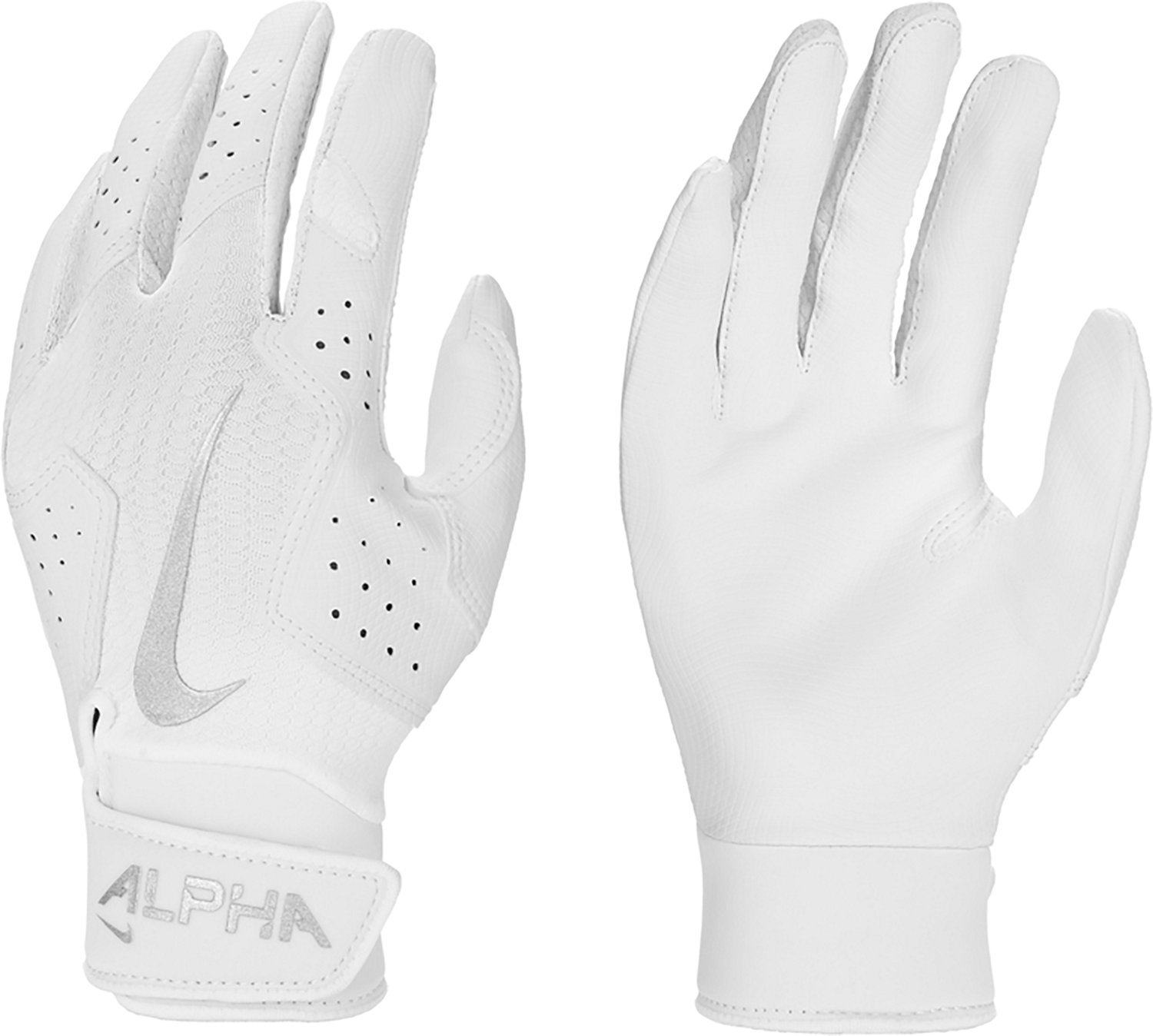 Keep a firm grip on the bat with the Nike Youth Alpha 2.0 Batting Glove. The polyester blend provides a comfortable feel, while the textured palm offers a firm grip. Built-in Dri-FIT technology helps keep your hand dry, and the neoprene cuff delivers a secure fit.