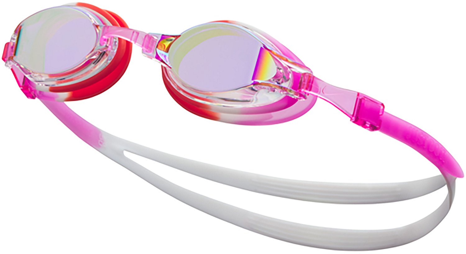 Get your young swimmers ready for the pool with Nike Youth Chrome Mirrored Swim Goggles. The UV-blocking lenses feature a mirrored finish to reduce glare and improve visibility. Cushioned gaskets and a 6-way adjustable nose bridge ensure a secure and comfortable fit.