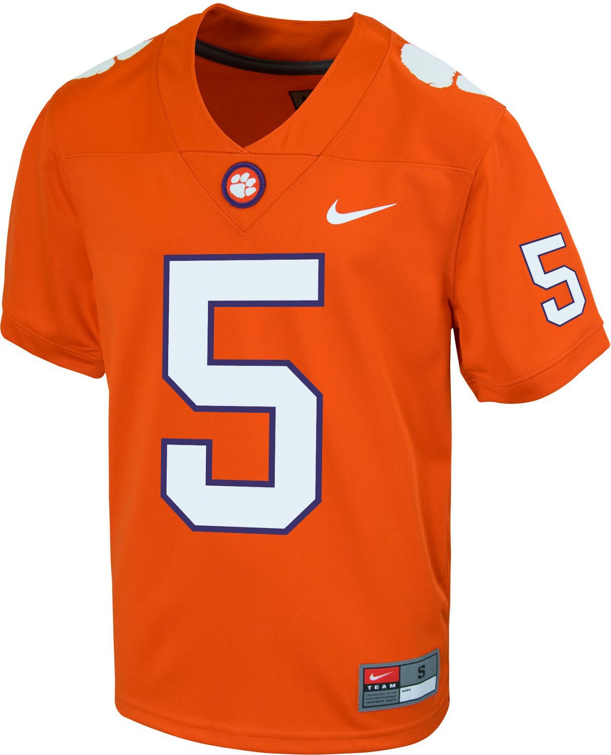 Represent the Tigers with an authentic look when you wear the Nike Youth Clemson University Replica Football Jersey. The soft-hand, matte-look polyester jersey for durability and an on-field appearance, while the screen-printed numbers and Swoosh design trademark add a touch of athletic style.