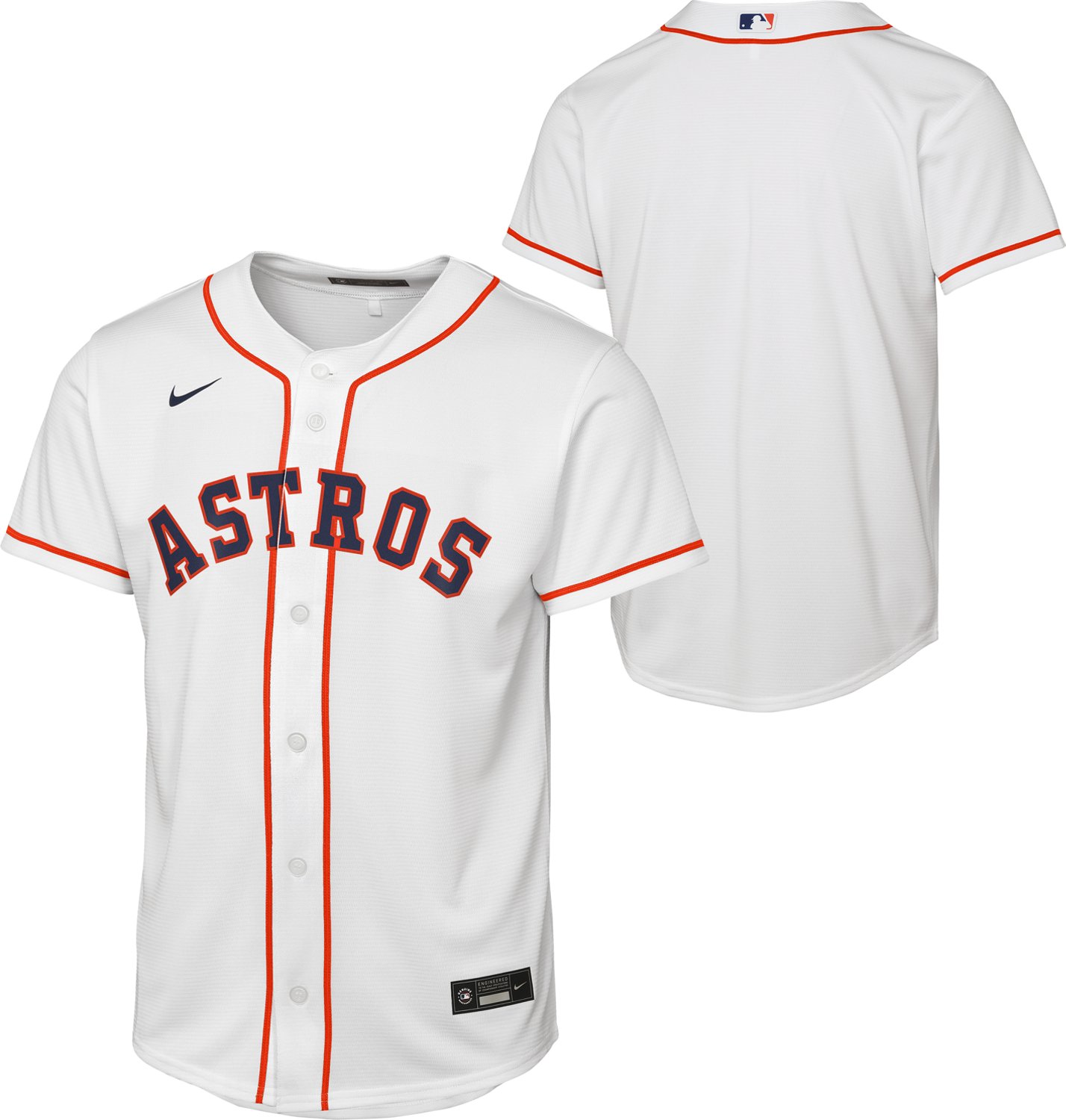 Let the world know you're a true fan when you wear the Nike Youth Houston Astros Home Replica 2.0 Jersey. The 100% polyester construction is built to last, while the graphic design makes it clear who you root for on game day.