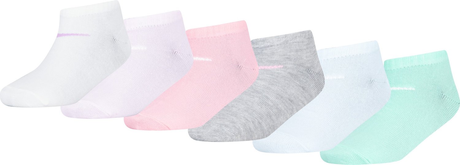 Keep little feet cozy on the go in the Nike Youth Metallic Swoosh Low Cut Socks 6 Pack. The polyester and elastane knit fabric offers a lightweight, stretchy feel. The low cut silhouette encourages a comfy fit, while the embroidered metallic logo graphic design adds style to her look.
