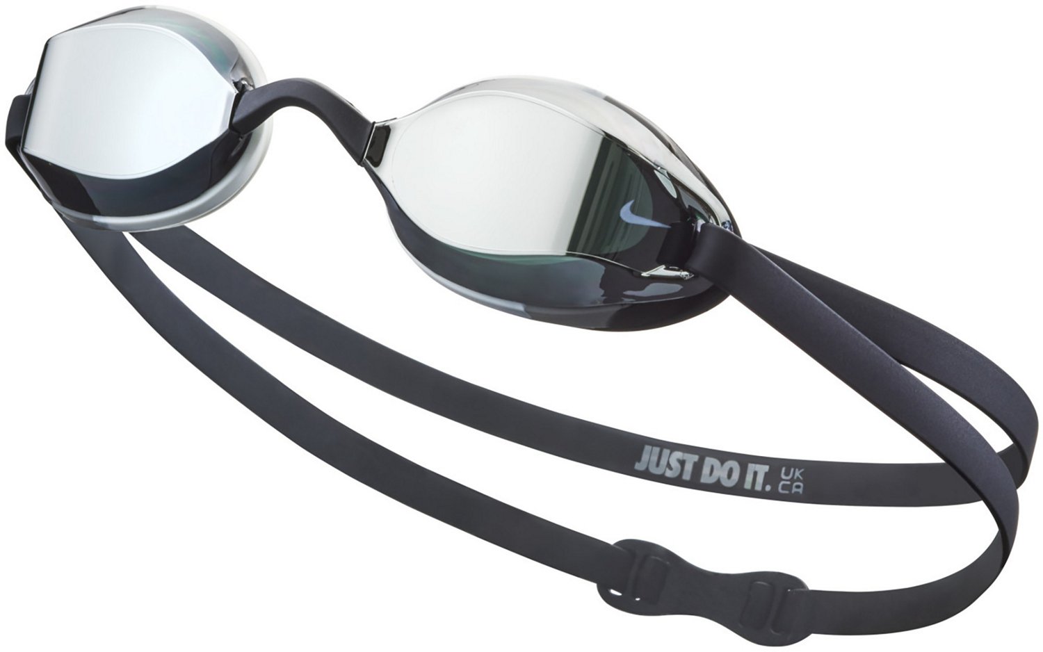 Stand out during swim practice wearing the Nike Youth Mirror Performance Goggles. The curved lenses help improve visibility as you swim, and the ergonomic nose bridge includes 4 sizes to accommodate a number of face sizes. The curved back clip rests softly on the back of your head while providing a snug fit, and the mirrored coating helps block UV rays and reduce glare.