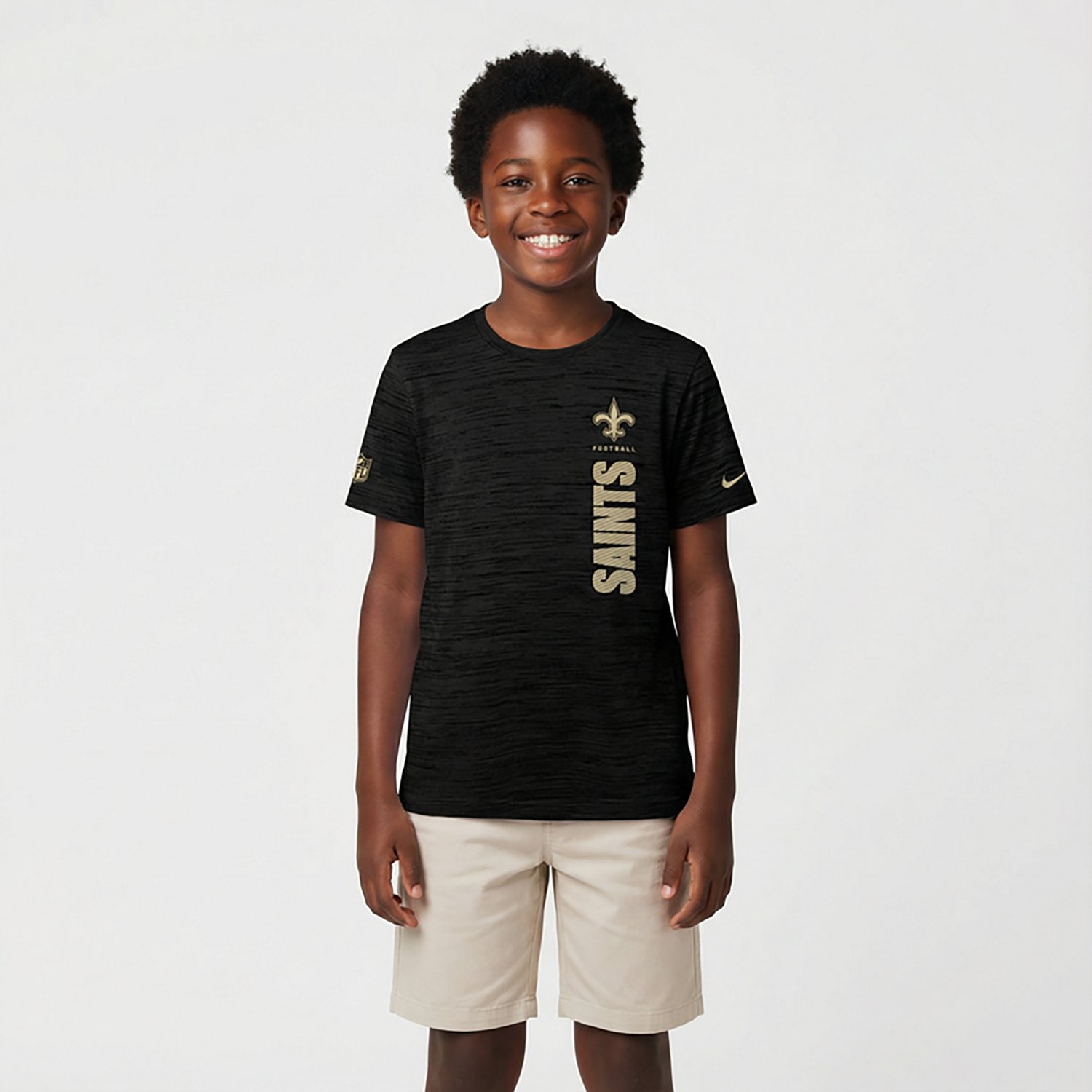 Put your love for your favorite team on display when you wear the Nike Youth Saints Dri-FIT Velocity Crew T-shirt. The Dri-FIT technology helps keep you dry and comfortable, while the team graphic showcases your fandom.