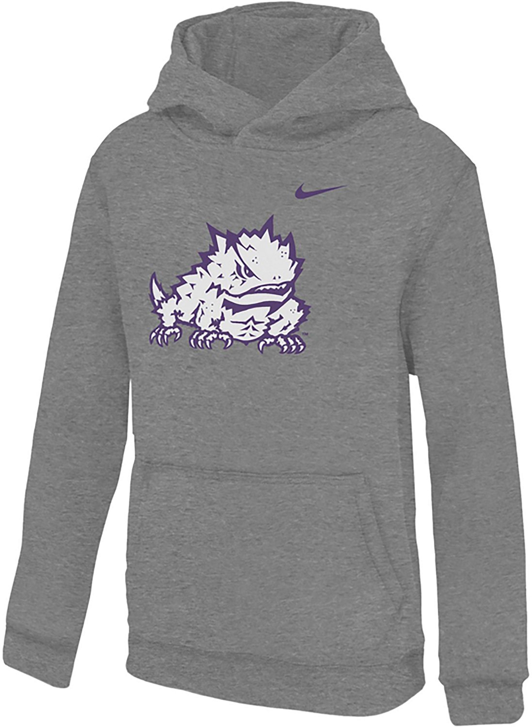Stay cozy while cheering on your favorite team with the Nike Youth TCU Mascot Club Fleece Hoodie. The cotton and polyester brushed-back fleece construction provides comfort and durability, while the team graphic lets everyone know who you cheer for on game day.