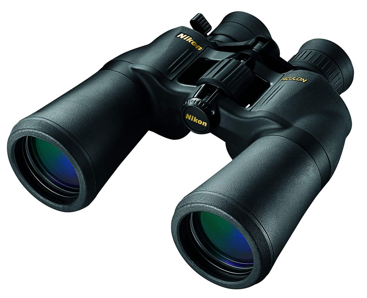 The Nikon ACULON A211 10 - 22 x 50 Porro Prism Binoculars feature fog-proof lenses and multicoated BaK-4 porro prisms that provide high-quality images under a multitude of lighting conditions. The rubber armor-coated, water-resistant exterior is rugged and easy to grip in wet conditions, and the matte finish won't give away your position. Twist-up eyecups offer comfortable viewing, and the center-focus knob is easy to adjust. Includes a neck strap, lens covers, a tripod mount and a padded carry case.