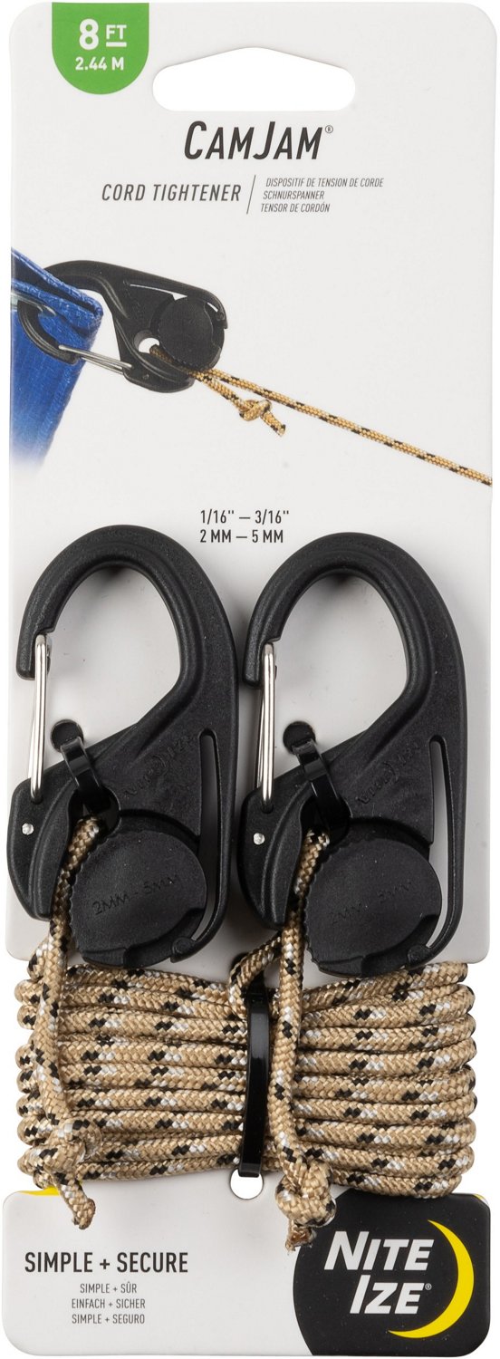 Bring along the Nite Ize CamJam Cord Tighteners 4-Pack and make sure you keep light loads from unwanted movement. The tighteners are made with plastic bodies that feature stainless-steel gates at 1 end and rotating, ridged cam mechanisms at the other end, helping you find the right level of tension.