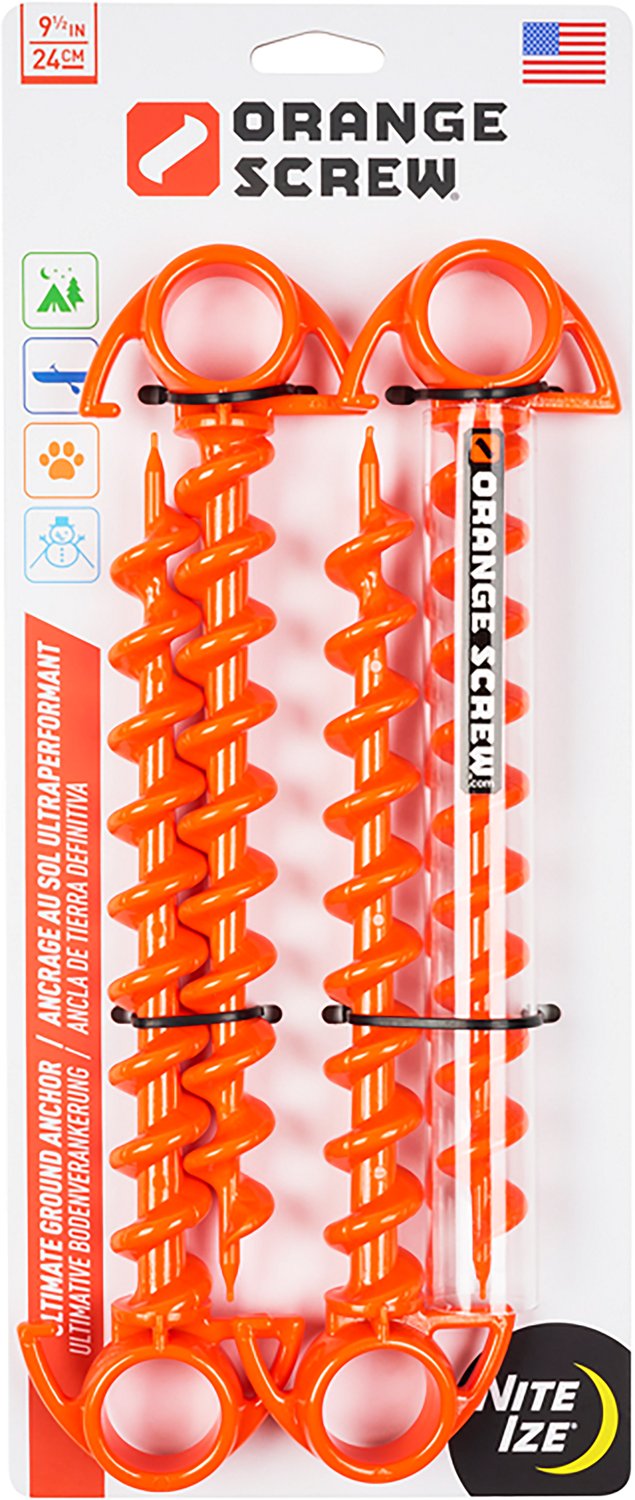 Securely tether a tent, dog tie-out or sun shelter with this Nite Ize Orange Screw Small Ground Anchor 4-Pack. Each anchor is made from durable polycarbonate with continuous threads for a firm grip in grass, clay or soil.
