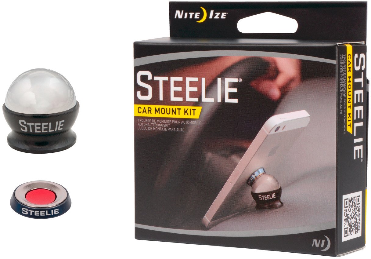 The Nite Ize Steelie Car Mount Kit includes everything you need to mount your mobile phone or tablet in your vehicle, including a ball mount and a removable magnetic phone socket. The mount kit makes it easy to position your device in landscape or portrait mode. The kit includes an alcohol prep pad and instructions to help simplify installation.