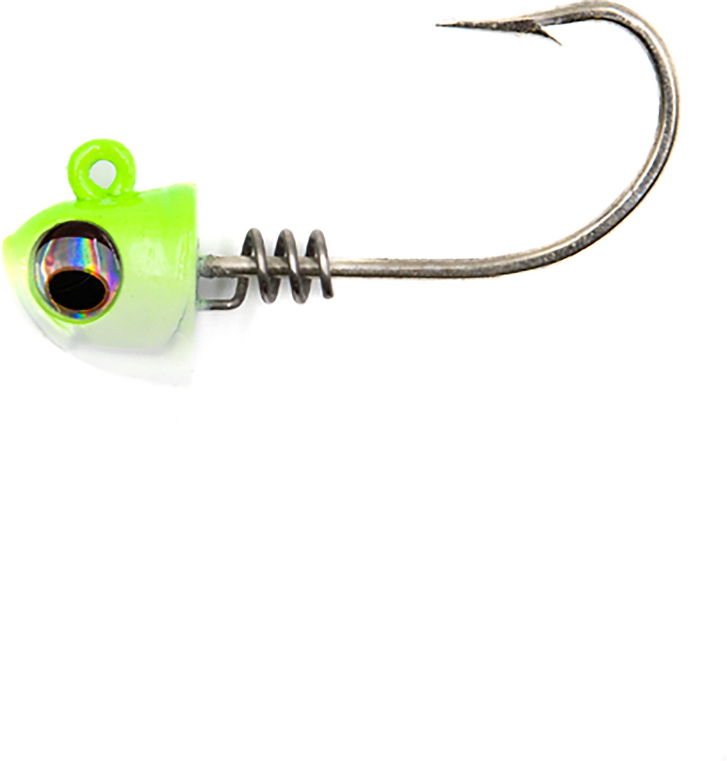 Reel in hard-fighting fish with this No Live Bait Needed 5 in Jig Heads 2-Pack. The jig heads are made of lead for durability, and they are designed with a streamlined profile for realistic swimming action.