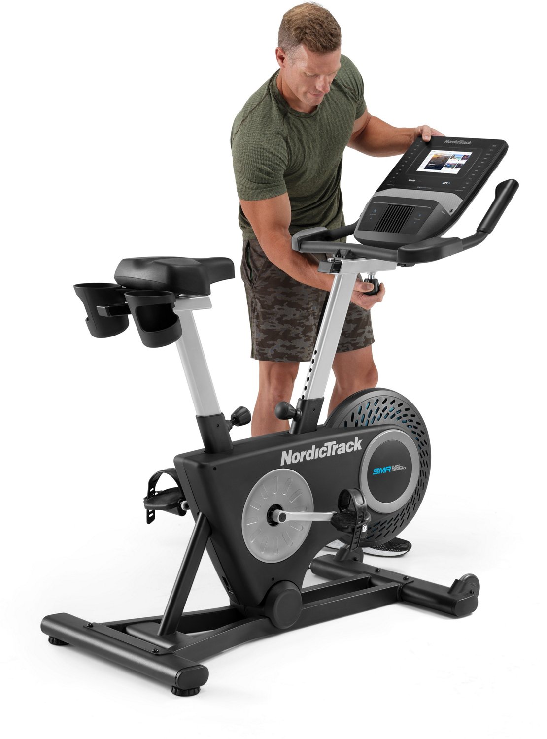 Workout at home in comfort with the Nordictrack Studio Bike. This workout bike features a 7-inch full-color touch display and an AutoBreeze™ workout fan that keeps you cool. The SMR™ silent magnetic resistance offers 22 resistance levels and the inertia-enhanced flywheel allows for smooth motion.
