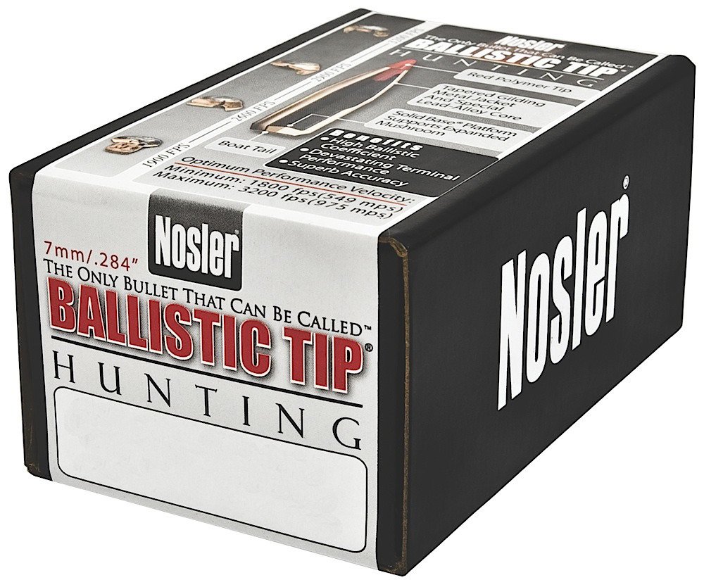 The Nosler Ballistic Tip Hunting Reloading Bullets feature fully tapered copper jackets and polymer tips that resist deformation in the magazine. Heavy jacket bases help prevent bullet deformation during firing and act as a platform for large-diameter mushrooms.