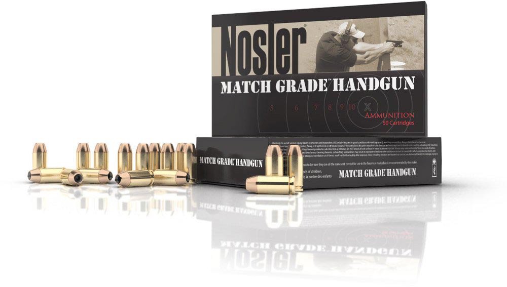 Hit the bull's-eye with the Nosler Match Grade Centerfire Handgun Ammunition. Recommended for target and range practice sessions, this ammunition features jacketed, hollow-point bullets with brass cases. 50-round box.
