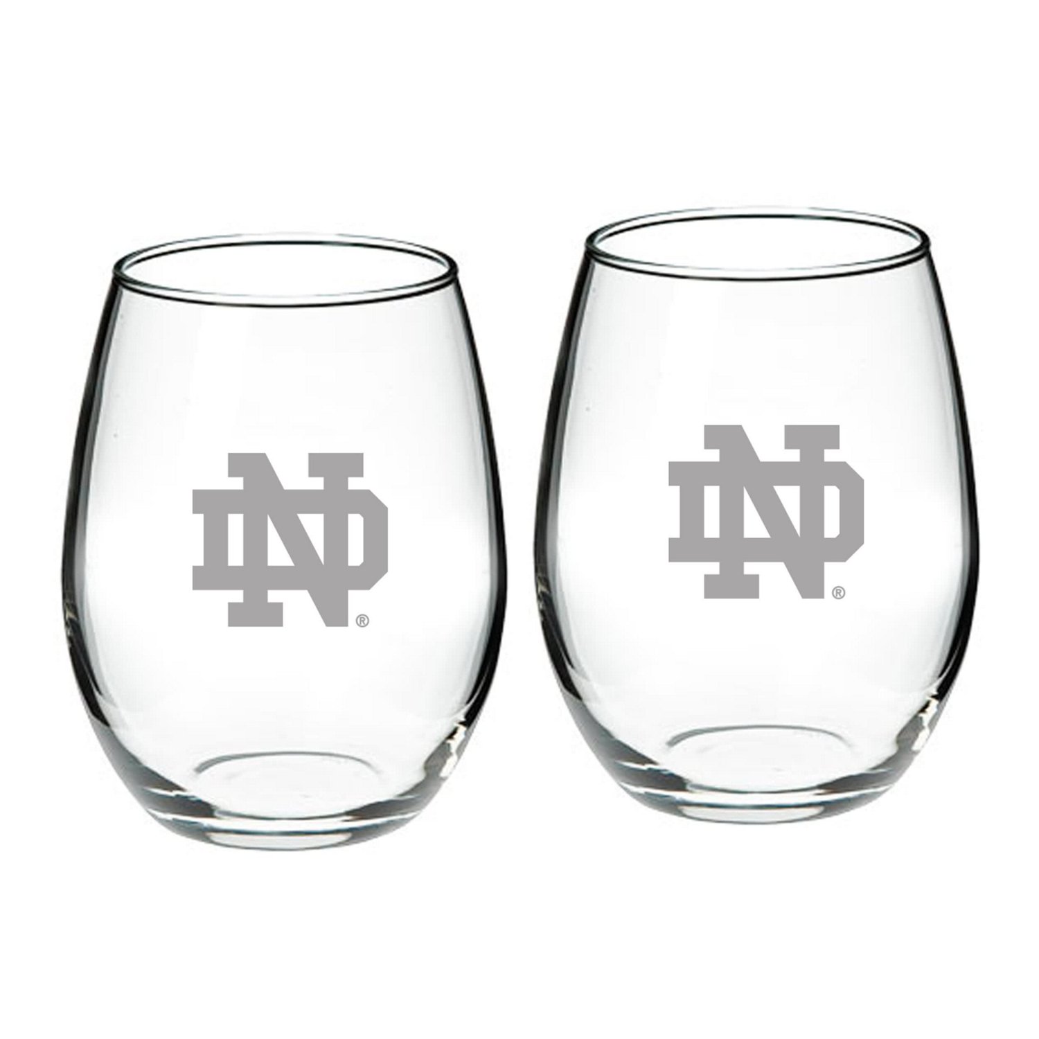 Celebrate every Notre Dame Fighting Irish win by enjoying your drink of choice out of this 21oz 2-Piece Etched Stemless Wine Glass Set The glasses feature crisp etched graphics putting your die-hard fandom on full display with every use Pour up a drink while showing off your Notre Dame Fighting Irish pride at the next gathering