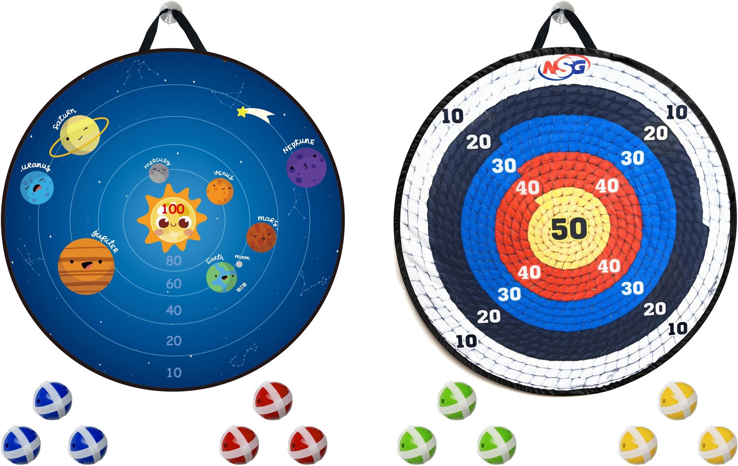 Whether you are having fun indoors or outdoors, you can play the NSG Giant Target Toss 30 in Dart Board and enjoy time with your friends. The plastic balls are lightweight and will not leave marks on the floor or walls, and the five numbered zones with increments of 10 provide an easy elementary scoring system for little ones. The hook-and-loop straps around the balls allow the balls to easily stick to the target, and the high-quality soft fabric feels soft while remaining durable.