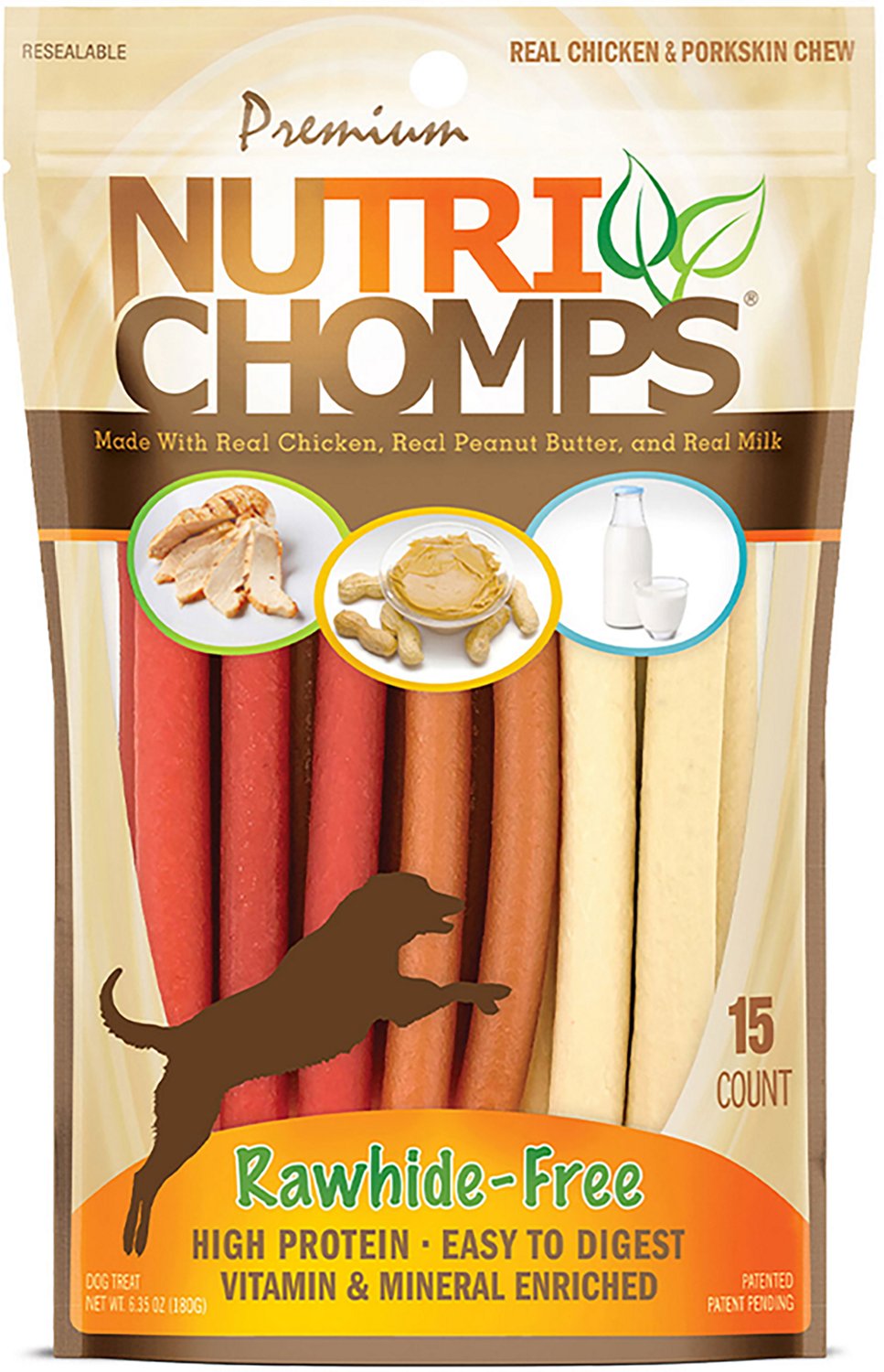 Made with real chicken, pork skin, milk, and peanut butter to keep your dog interested