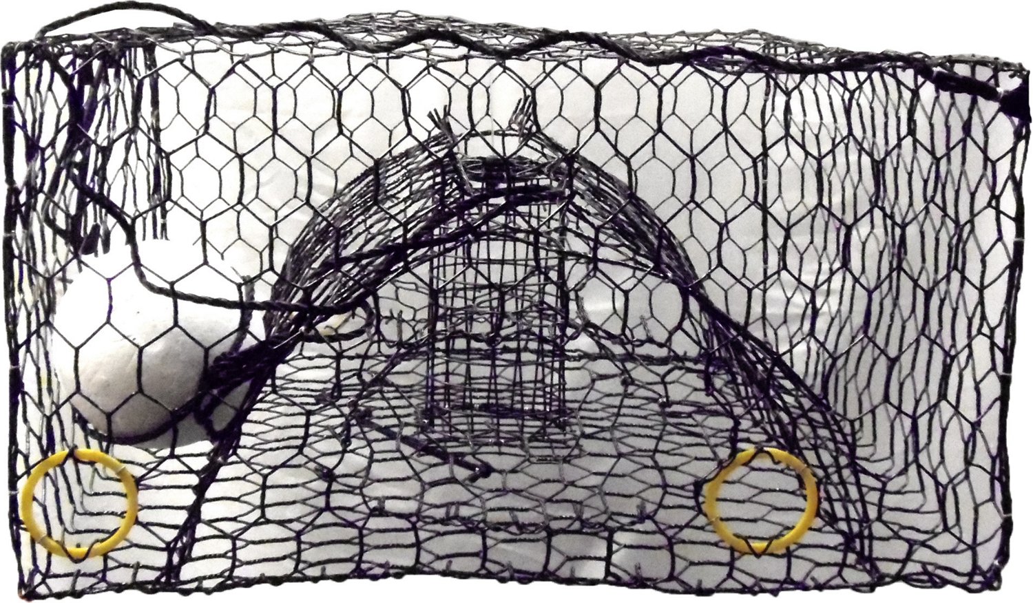 Catch blue crabs with the O&H Mfg. 24" x 24" x 15" Deluxe Crab Trap, which is made of steel wire that is coated with vinyl PVC for use in saltwater and features reinforcement bars to keep its square shape, biodegradable jute twine for hooking and a baffle that allows the trap to hold more crabs. This trap is equipped with a 6" rigged ball float and 10' of polyester rope. Made in USA.