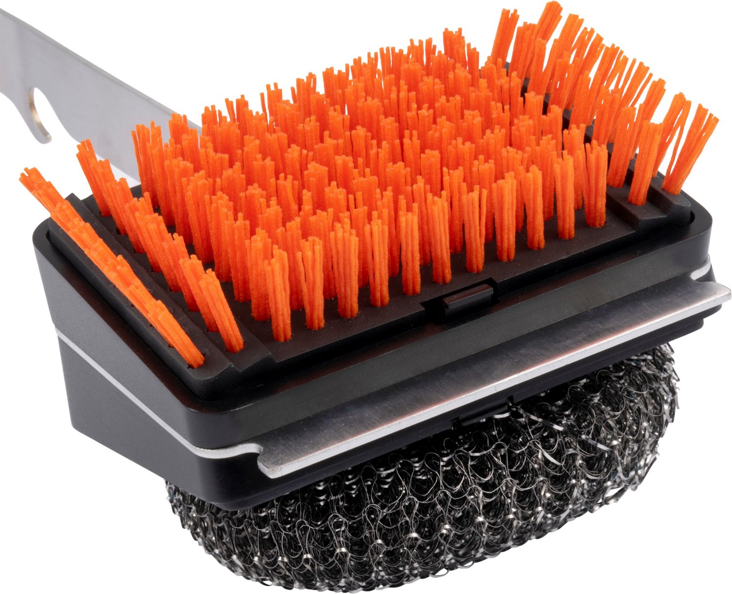 Brushes, scrubs and scrapes your grill grates for a thorough cleaning