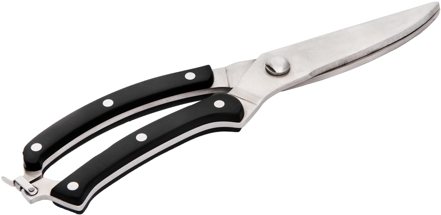 Prepare for your next cookout with the Oklahoma Joe's Blacksmith Meat Shears. Designed to easily cut through meat, bone or shell, these shears are essential at the grill. They're constructed from stainless steel and have riveted, full-tang handles for stability. A locking latch provides safe storage.