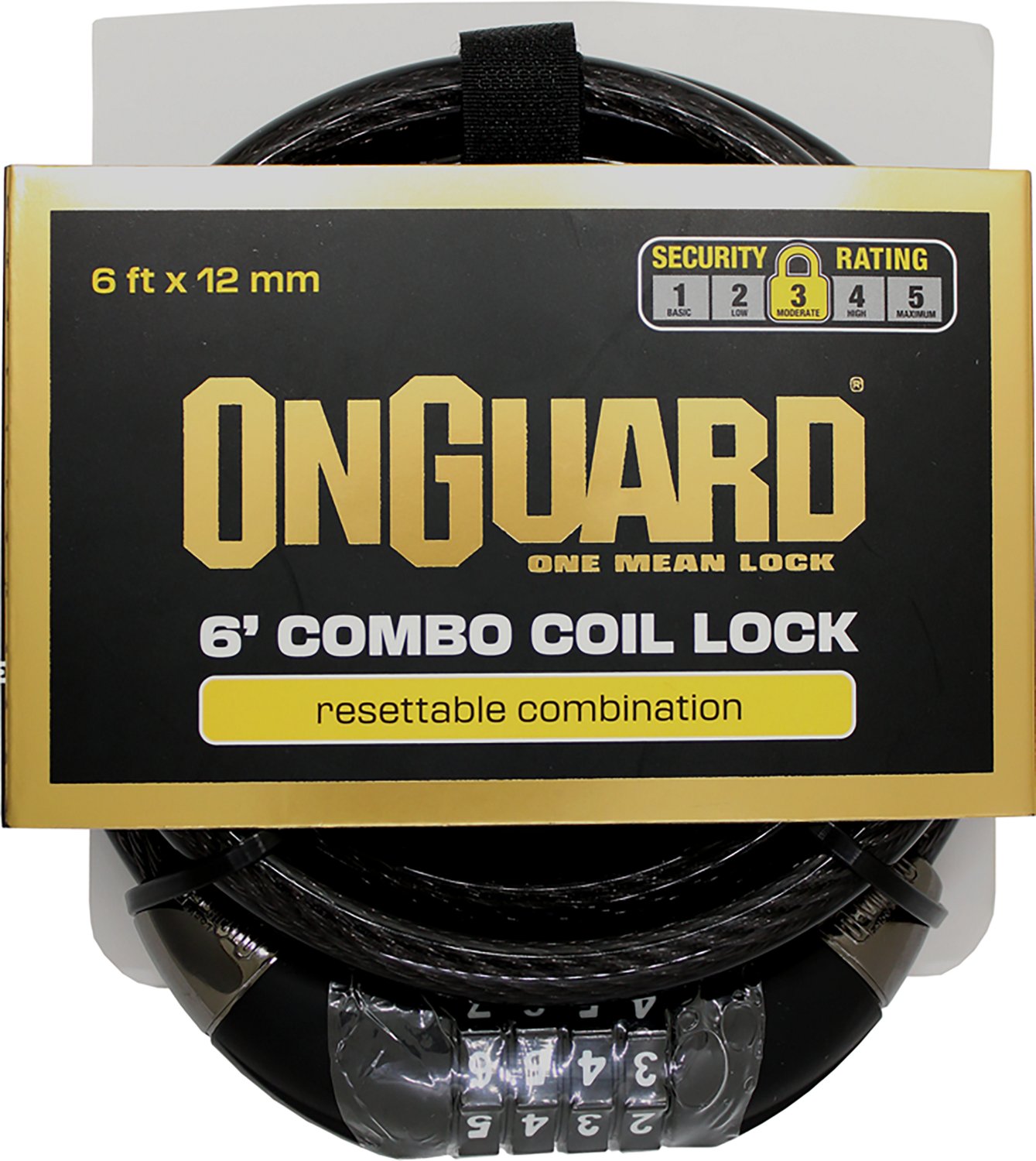 Confidently secure your bike in public with this OnGuard Adults' 6 ft x 12 mm Combo Cable Lock. It is designed with a coil cable for rugged durability, and the lock features a drill-resistant cylinder to guard against various types of theft.