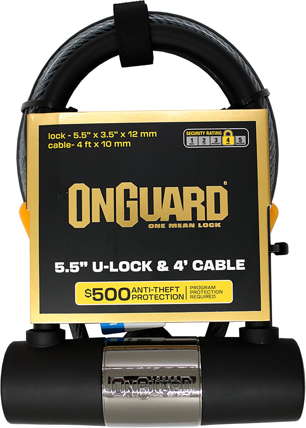 Secure your bike confidently with this OnGuard U-Lock & Cable. The lock features a double rubber coating to help with abrasion resistance, and the cylinder is drill-resistant to guard against various types of theft. Registration to the $500 anti-theft program is required.