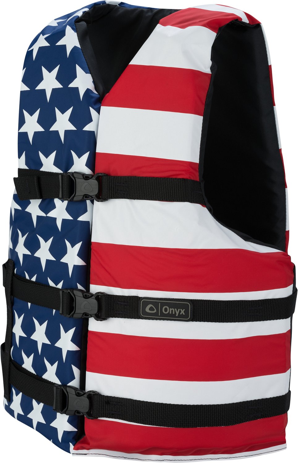 Constructed with lightweight, durable flotation foam for comfort and safety for water activities, the Onyx Outdoor™ General Purpose Vest features nylon and polyester twill construction for comfortable, durable wear. Designed with adjustable belts and a chest strap to prevent the vest from riding up, the vest also features an open-sided style. USCG approved.