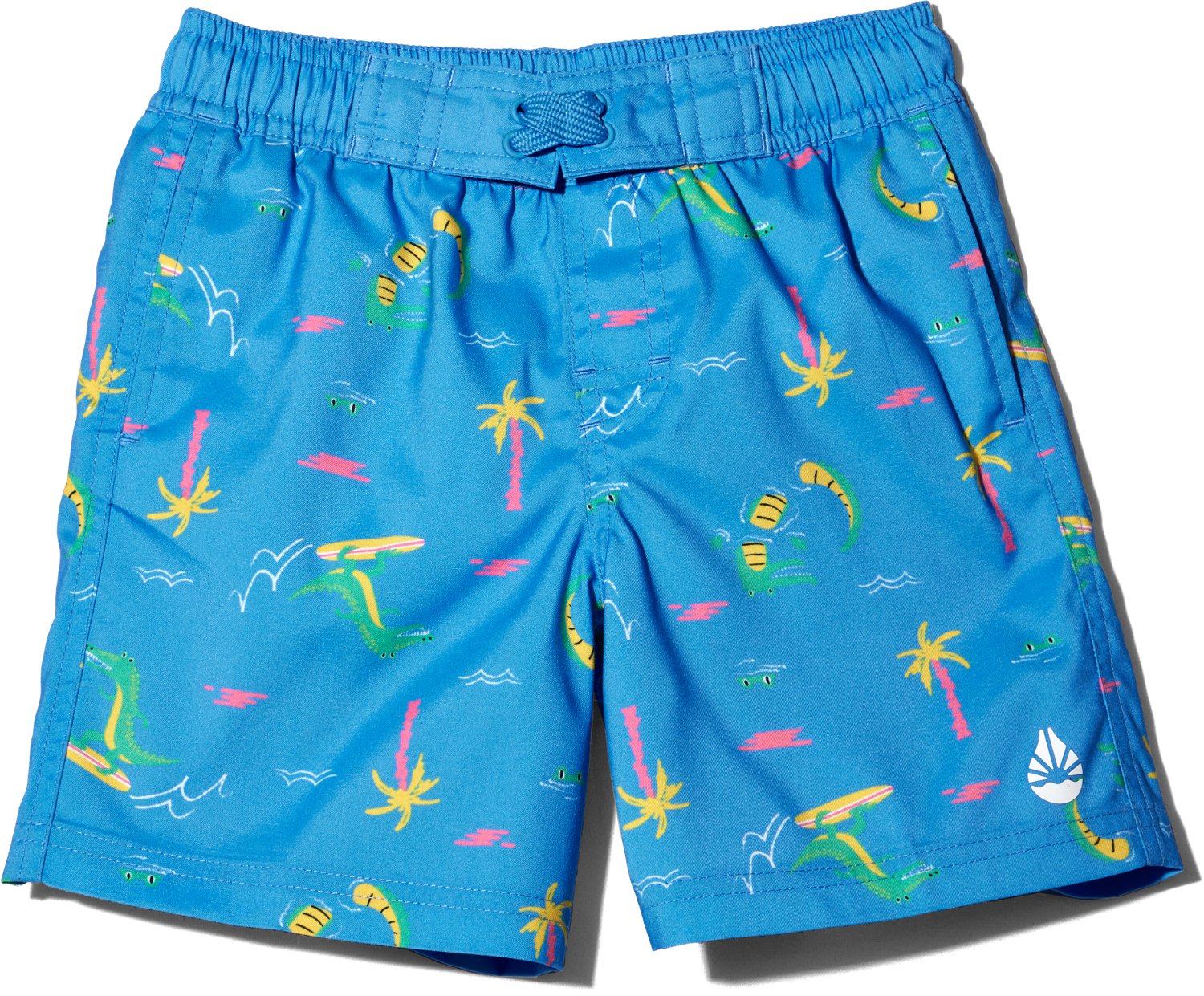 Keep him protected during your beach outing with the O'Rageous Boys' 4-7 Crocs Printed E Boardshorts. These comfortable boardshorts are made with a stretchy polyester and spandex blend with a playful crocs print, so he can swim and play with ease. The UPF 50 sun protection shields his skin, while the adjustable waistband stays in place all day.
