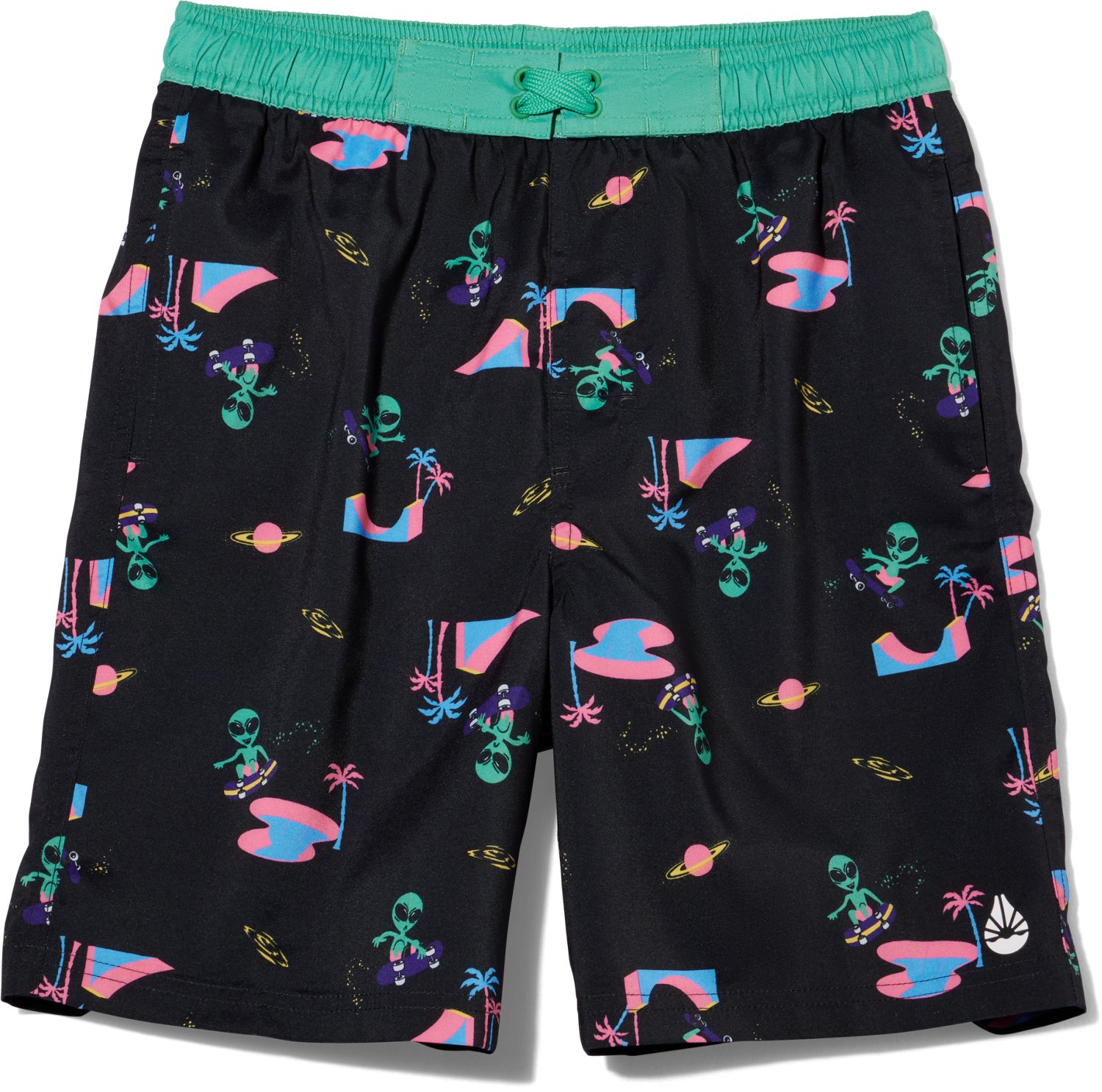 Keep your little one comfortable in the water with these O'Rageous Boys' Aliens Printed E Boardshorts. They are made of 96% recycled polyester and 4% spandex for durability and flexibility, and the boardshorts deliver UPF 50+ protection to guard against UV rays.