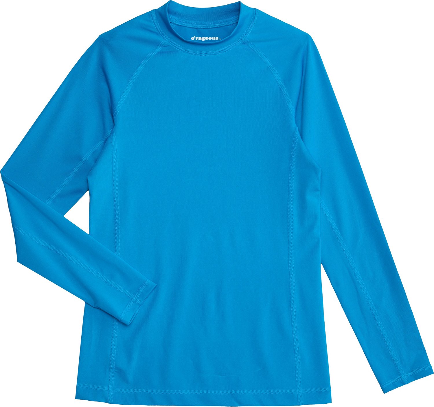 Equip your kids for swimming or boarding fun with the O'Rageous Boys' Solid Long Sleeve Rash Guard. The fitted cut and polyester-spandex blend allow unhindered mobility in or on the water, and the moisture-wicking technology dries quickly. UPF protection helps prevent sunburns.