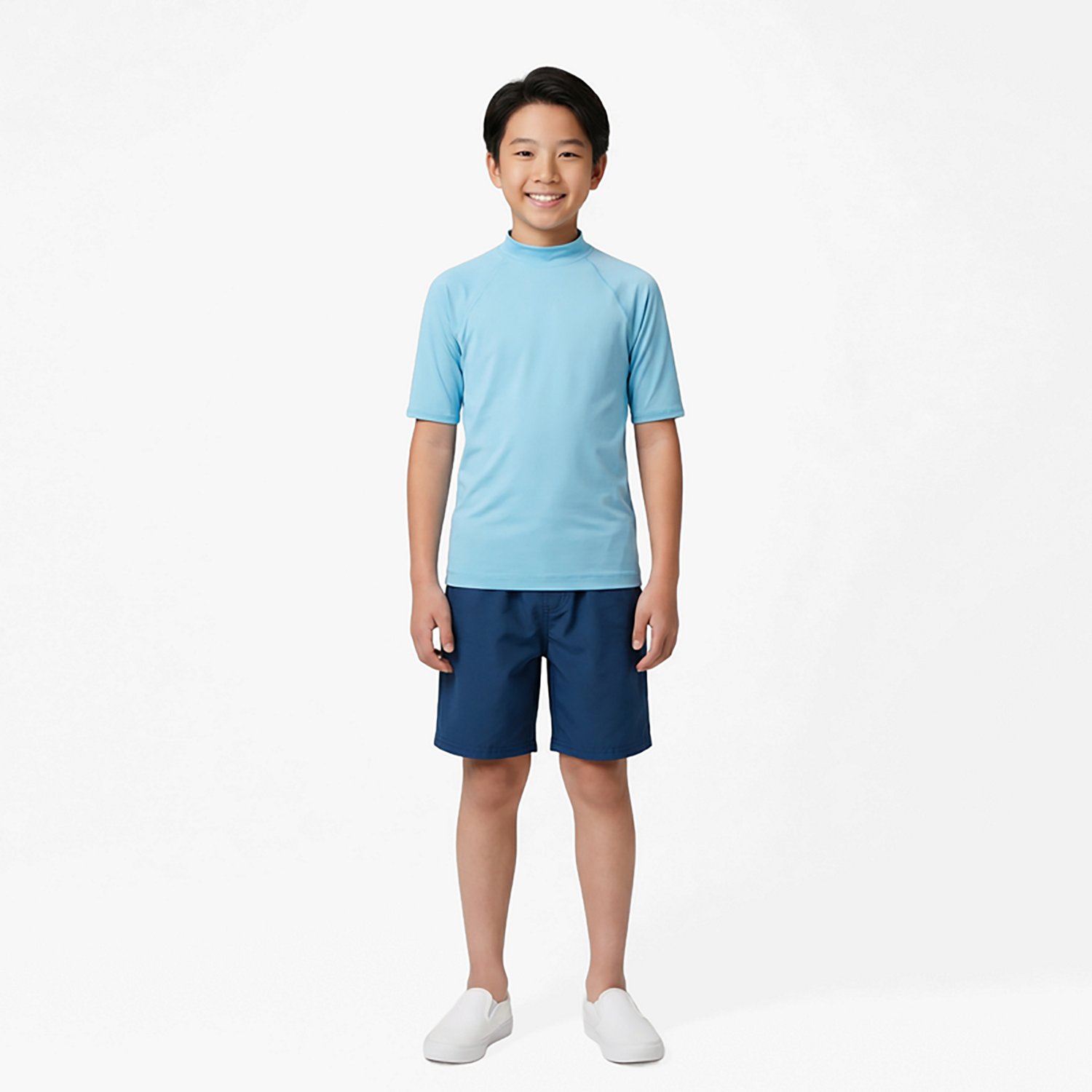 Keep your swimming-obsessed little one comfortable and safe in this O'Rageous Boys' Solid Short Sleeve Rash Guard. It is made of 88% recycled polyester and 12% spandex for durability and flexibility, and the rash guard delivers UPF 50+ protection to guard users from UV rays.