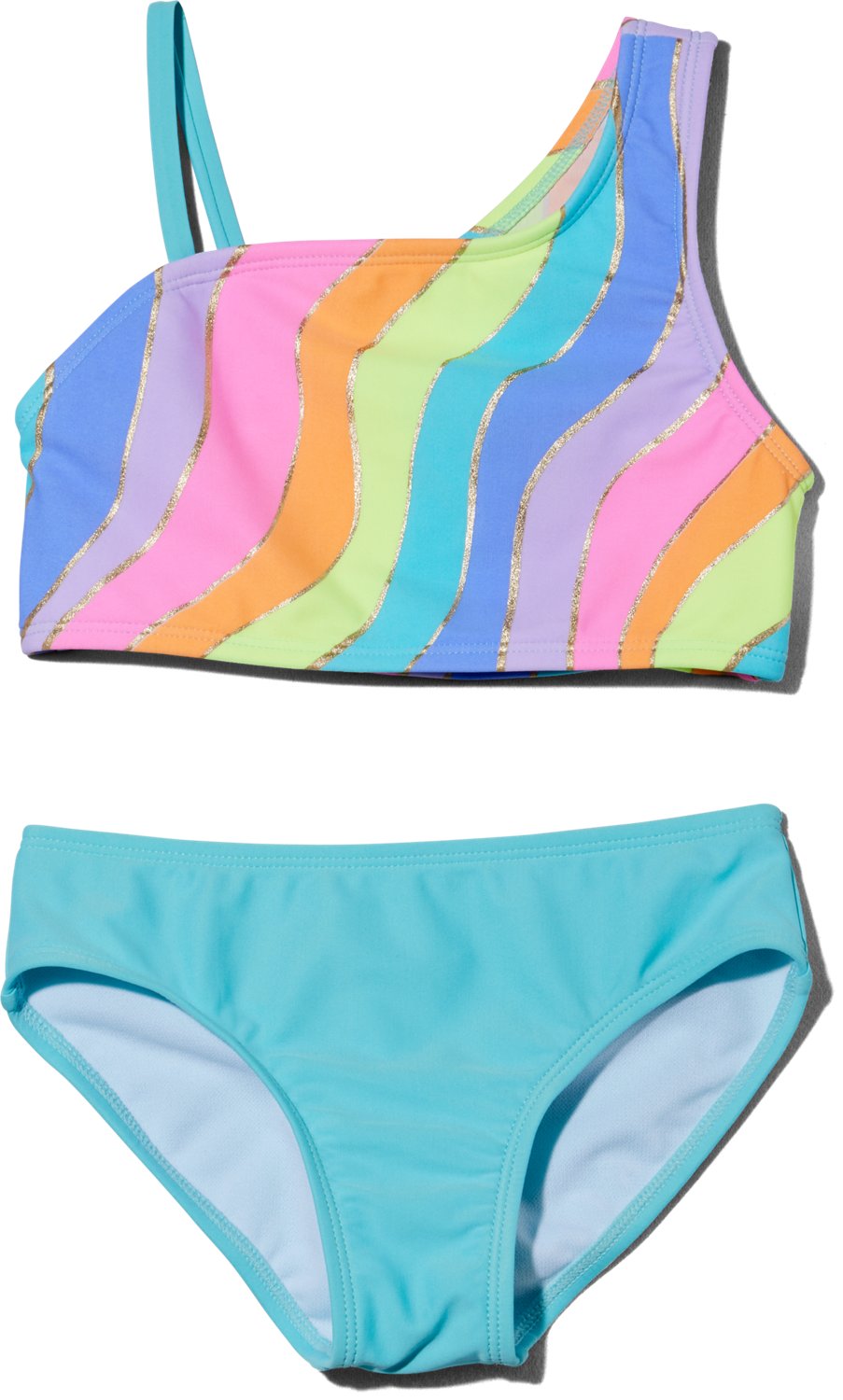 O'Rageous Girls' 4-7 Groovy Glimmer Waves 2-Piece One Shoulder Bikini