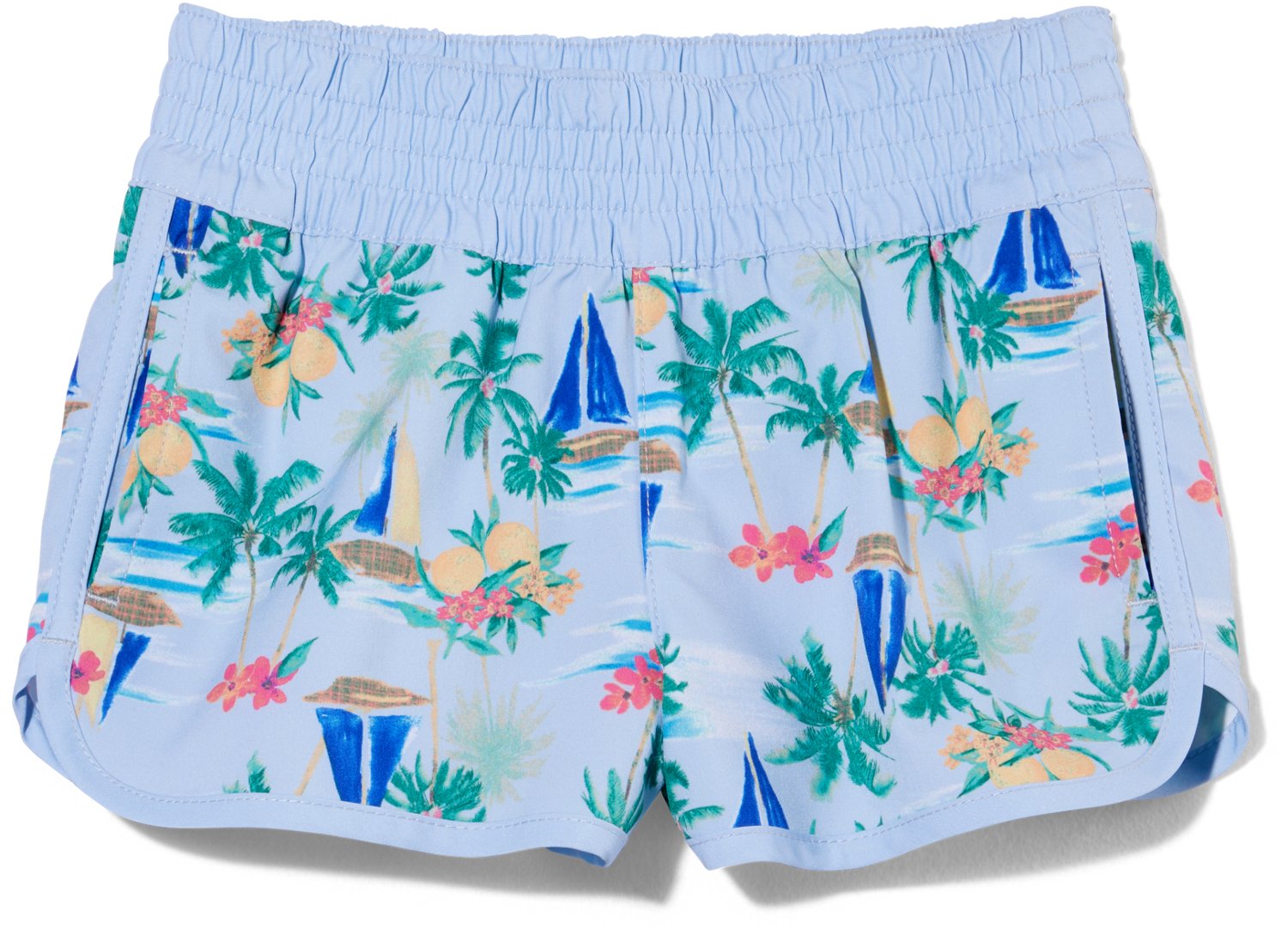 Keep her protected during your beach outing with the O'Rageous Girls' 4-7 Printed Toile E Boardshorts. These comfortable boardshorts are made of a stretchy polyester and spandex blend with a playful print so she can swim and play with ease. The UPF 50 sun protection shields her skin, while the adjustable waistband stays in place all day.