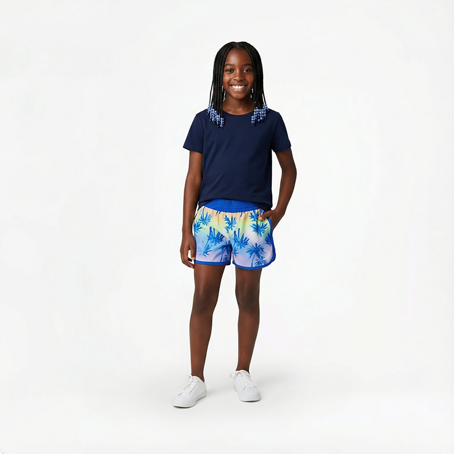Keep her protected during your beach outing with the O'Rageous Girls' Daisy Printed E Boardshorts. These comfortable boardshorts are made with a stretchy polyester and spandex blend with a colorful daisy print so she can swim and play with ease. The UPF 50 sun protection shields her skin, while the adjustable waistband stays in place all day.