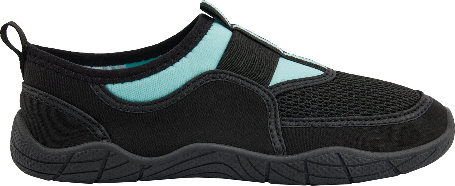 She'll enjoy the water comfortably wearing the O'Rageous Girls' Drainage Aqua Sock Water Shoes. The textile and mesh uppers provide lightweight breathability, and the perforated die-cut EVA insoles offer comfortable wear. The TPR outsoles deliver lasting durability with easy drainage.