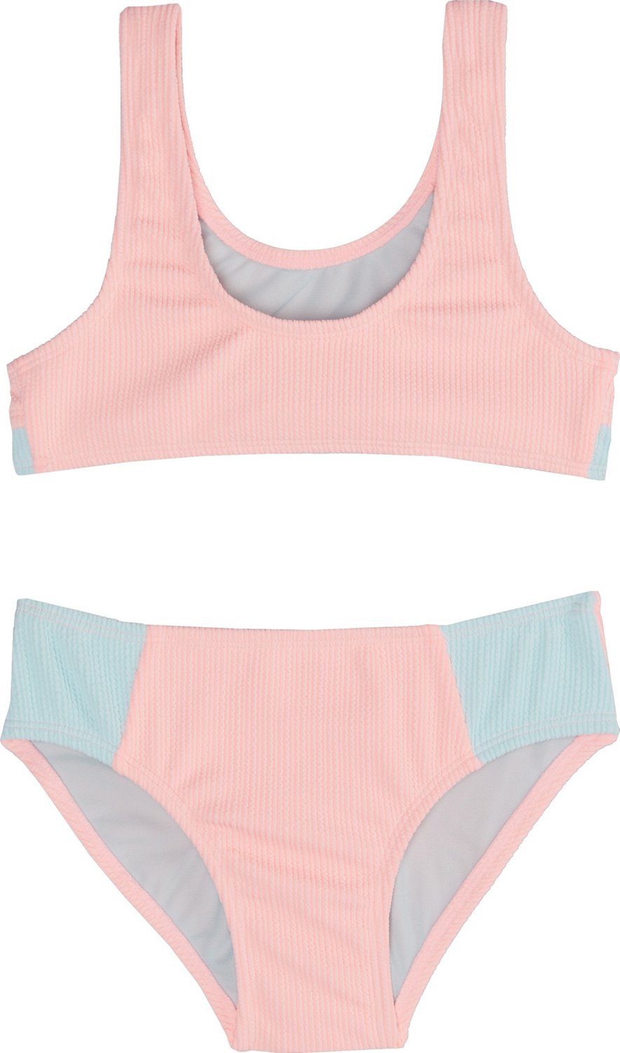 Get kids ready for beach day with an O'Rageous Girls' Rib Knit 2-Piece Swimsuit. The stretch blend fabric delivers a snug fit that won't restrict her movement while she swims, splashes and plays. An all-over rib knit texture adds classy style.