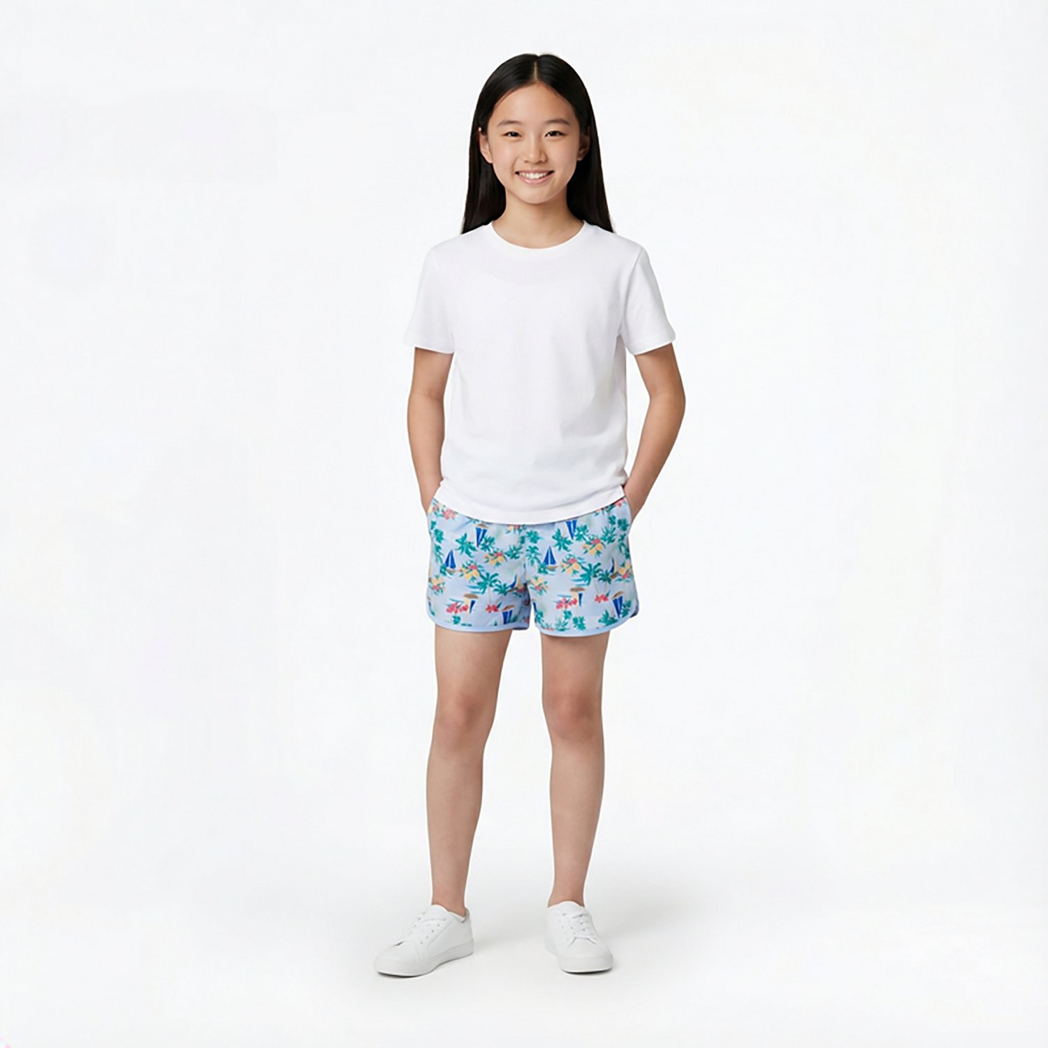 Keep her protected during your beach outing with the O'Rageous Girls' Toile Printed E Boardshorts. These comfortable boardshorts are made with a stretchy polyester and spandex blend with a playful print so she can swim and play with ease. The UPF 50 sun protection shields her skin, while the adjustable waistband stays in place all day.