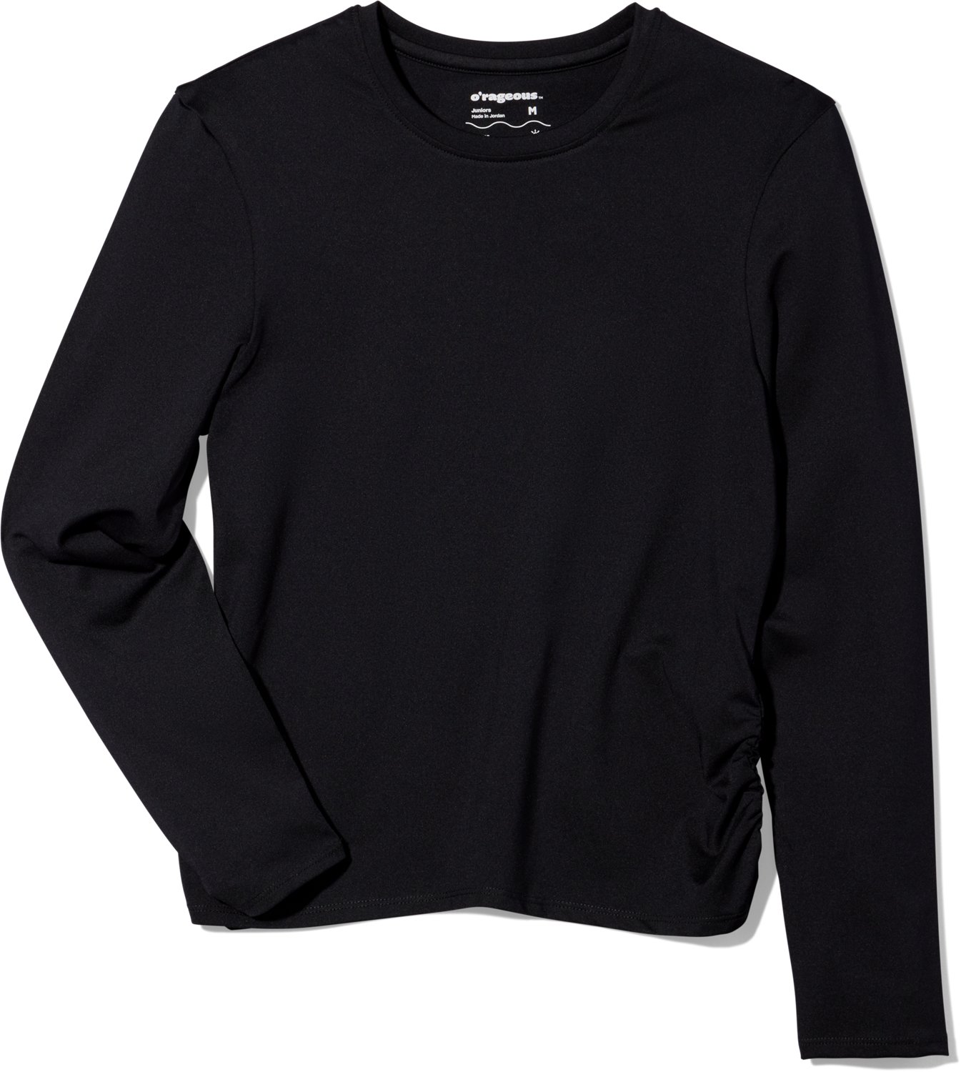 Stay protected by the pool wearing this O'Rageous Juniors’ Cinched Solid Long Sleeve Rash Guard. It’s crafted from polyester and spandex with a side cinching detail for comfort and style, and UPF 50 technology shields you from harmful rays.
