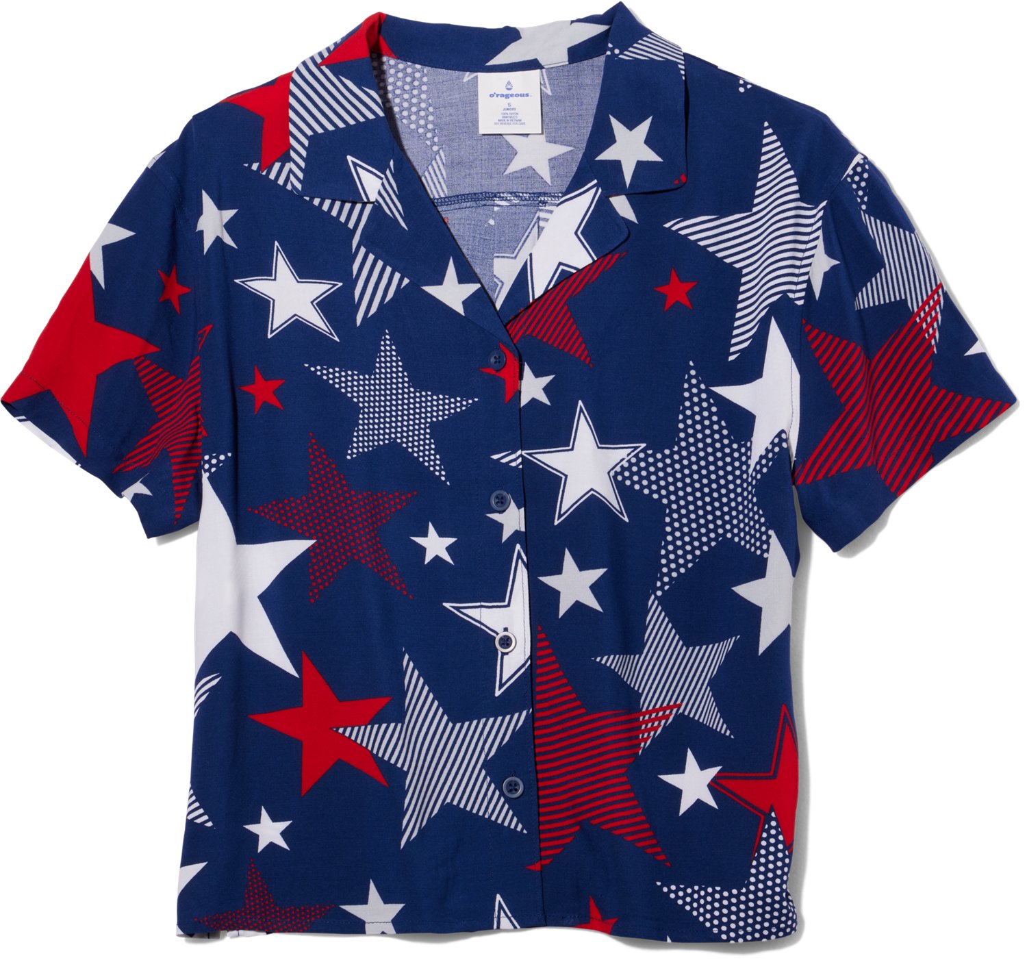 O'Rageous Juniors' Americana Printed Short Sleeve Cabana Top