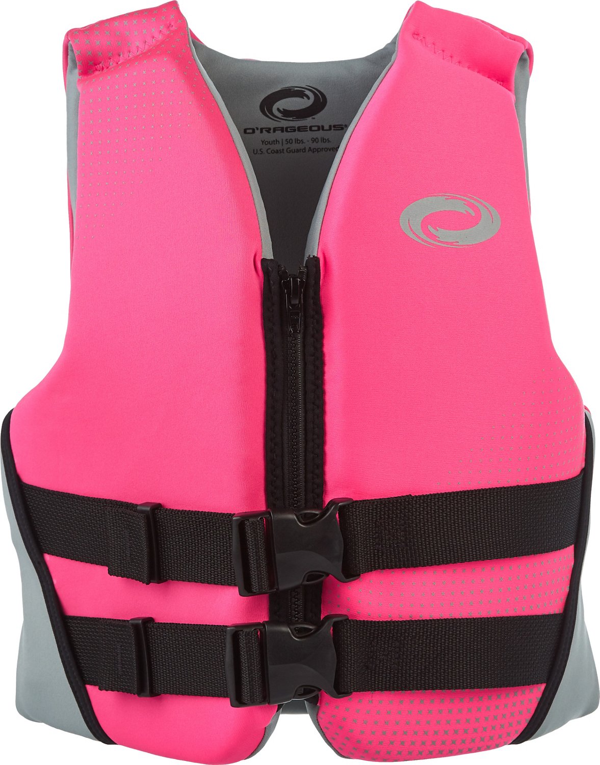 Enjoy a safe day on the water while wearing the O'Rageous Kids' Neoprene Life Vest, which is made of PE layered foam with a Biolite exterior for a lightweight, breathable feel. The oversize arm holes make it easy to put on and take off, and the full-length center zip and adjustable straps give you a snug, comfortable fit.