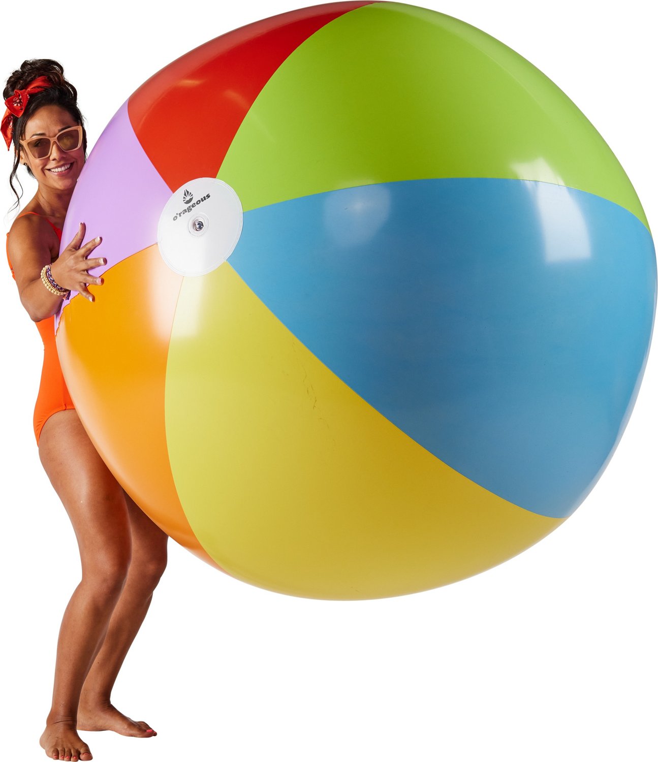 Enjoy playtime at the beach when you bring out the O'Rageous Mega Beach Ball. This lightweight ball adds fun to playtime anywhere. The multicolored design adds a bold and vibrant appearance to your game, while the mega-sized construction provides an easy to catch performance for safe play by all ages.