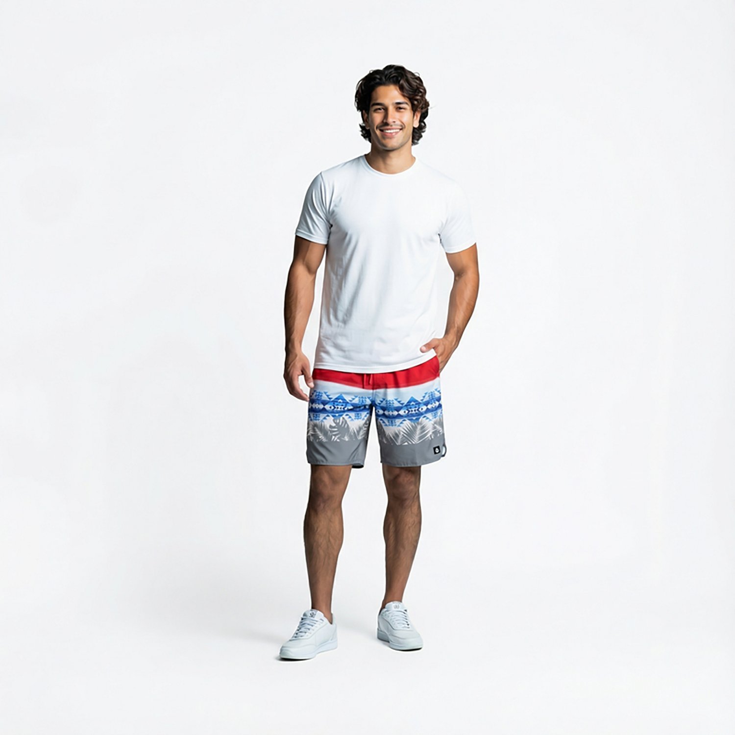 Hit the beach in style with the O'Rageous Men's Aztec Printed True Boardshorts. These adjustable boardshorts stay in place and are made with a stretchy polyester, cotton and elastane blend so you can swim and adventure confidently. The Aztec print helps you stand out.