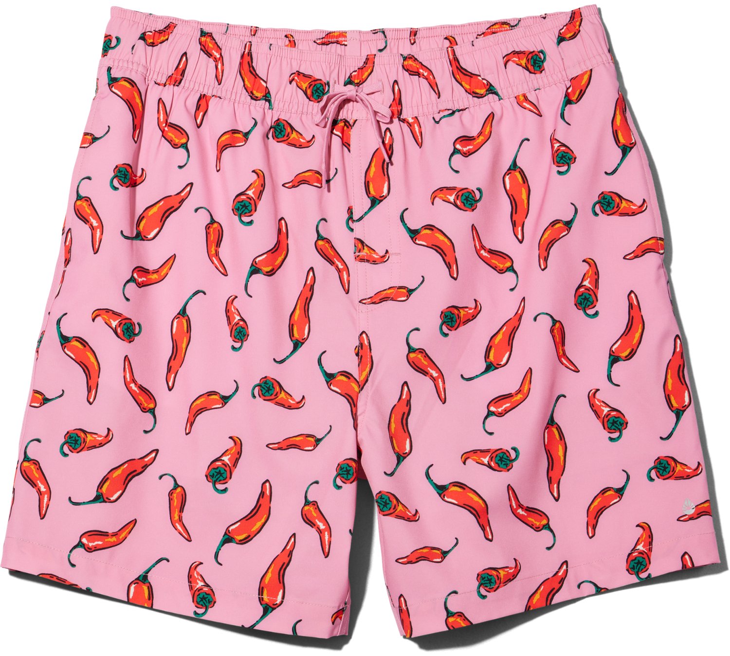 Splash around in the O'Rageous Men's Chili Printed Volley Swim Shorts 6 in. Their body is made of 92% polyester and 8% spandex. The lining is made of 90% polyester and 10% spandex, and their UPF 50+ rating provides protection against the sun. The elastic drawcord allows for an adjustable wear.